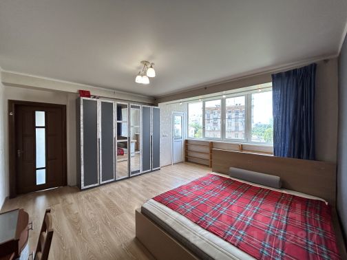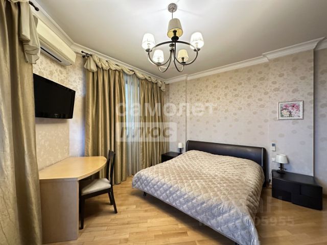 Большая спальная комната оборудована комфортно: кровать, телевизор Samsung, кондиционер Panasonic, шкаф. Организовано удобное рабочее место, регулируемая система потолочного освещения.