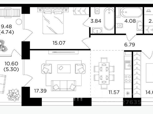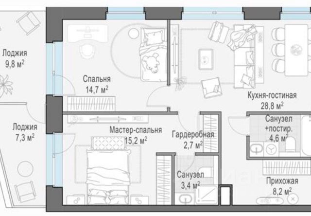 Квартира продается с разработанным дизайн-проектом и ремонтом. В стоимость входит все, что есть на визуализациях: качественный ремонт, мебель, техника, аксессуары и текстиль. Возможно внесение изменений по вашим пожеланиям.