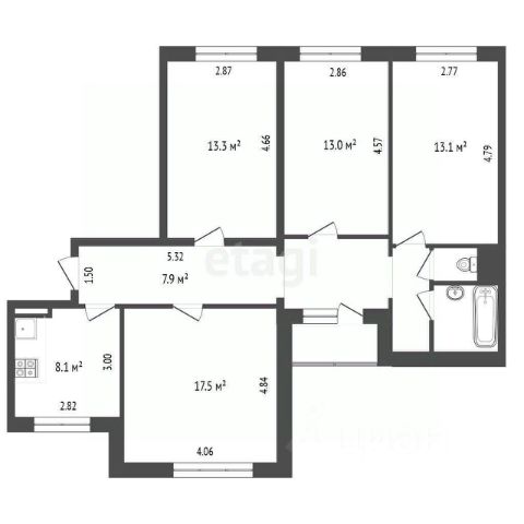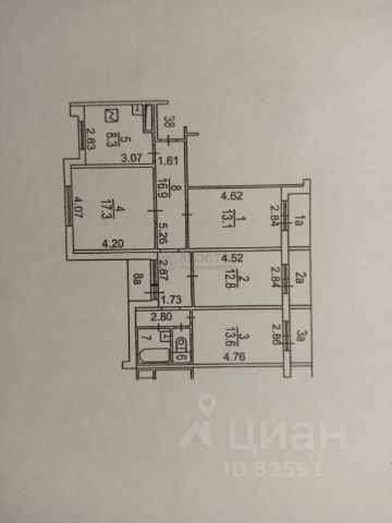 Общая площадь 84,8 м2, комнаты: три изолированные 12, 13 и 13 м2 и одна проходная 18,5 м2, кухня 9 м2, 4 балкона, большой совмещенный санузел. В квартире тишина, шумных дорог рядом нет!