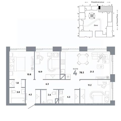 О квартире: очень светлая, просторная 4х комнатная квартира с панорамным видом со всех окон, гостиная и три спальни, комнаты: 20, 20, 15.6 и 11,5. Общая площадь 105,4 кв.м, плюс утепленная лоджия 4,5 кв.м и гардеробная комната с окном. Евроремонт с заменой всех коммуникаций, включая электропроводку. Можно оборудовать второй санузел. Квартира в жилом состоянии, можно заехать и жить. Приличный контингент в доме, хорошие соседи. Дом обслуживает ТСЖ АГАТ, высокое качество обслуживания, при этом коммунальные платежи как у всех. Мебель входит в стоимость. Спешите, в данном доме квартиры продаются крайне редко! Вариант для тех, кто любит комфорт и безопасность!