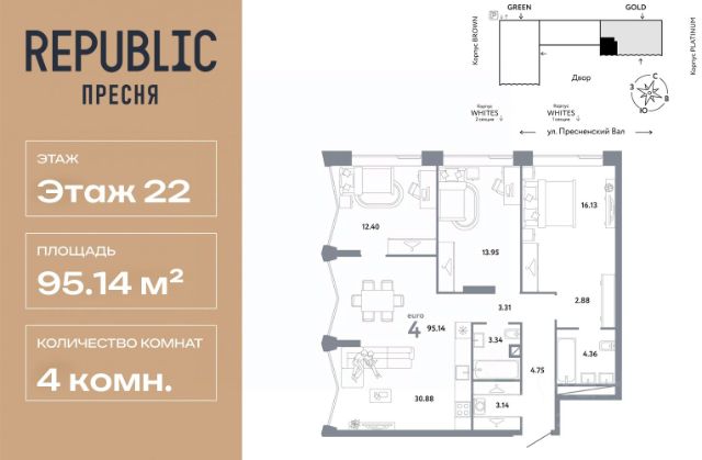 Квартиры премиум-класса в жилом комплексе SLAVA у м. "Белорусская" от застройщика. В продаже 4-к квартира площадью 115.10 м² на 6-м этаже корпуса D. Новый современный жилой комплекс премиум-класса SLAVA расположен в той части центра, где традиция соединяется с прогрессивными городскими тенденциями. Здесь историческая Москва встречается с передовым миром. Популярные театры и старинные церкви соседствуют с современным деловым кварталом и гастрономическим кластером Депо. SLAVA находится всего в 5 мин. пешком от м. "Белорусская", по-новому открывая Ленинградский проспект. Проект был разработан легендарным архитектором Хельмутом Яном, основателем чикагского архитектурного бюро Jahn. Его работы отмечены множеством наград и реализованы в мегаполисах по всему миру. По замыслу архитекторов, жилой комплекс образуют четыре высотные башни, соединенные одноэтажным стилобатом "Хронограф". Здесь, на первом уровне, открытые и закрытые общественные пространства: небольшие сады, места для встреч и отдыха, кафе, рестораны, магазины, спортивный центр и даже выставочное пространство. Важнейшей особенностью пространства является его всесезонность: благодаря правильной организации, ландшафтному дизайну, инженерной инфраструктуре здесь будет уютно и в жару, и в xолод, и в ненастье. На втором уровне стилобата расположится приватный парк для жильцов. Особенности комплекса: - Идеальное расположение в престижной части Москвы (10 мин. от Кремля) - Панорамное остекление - Подземный паркинг с дизайнерской отделкой - Современные инженерные системы - Продуманная внутренняя инфраструктура - Приватный сад 7700 кв.м. Расположение комплекса: - 5 минут до станции метро "Белорусская" - 3 минуты до ТТК - 8 минут до "Садового кольца" Компания MR Group предлагает своим клиентам специальные условия приобретения квартир в рамках программ ипотечного кредитования от банков-партнеров. 4-комнатная квартира рядом с метро Белорусская.
