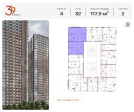 Номер лота: 349 Продается четырехкомнатная квартира в ЖК "Проспект 39" по адресу Москва, ЮВАО, Рязанский проспект, вл. 39, к. 2. Общая площадь квартиры - 117,90 кв.м., этаж 32. Стоимость квартиры - 39 383 547 р. Продаётся без отделки. Жилой комплекс состоит из пяти монолитных башен высотой 32 этажа. В архитектуре проекта используются приемы и материалы, отражающие стиль индустриализации, характерный для данной локации. Фасады оформлены с помощью плитки, имитирующей красный состаренный кирпич, и металлических элементов дымчато-чёрного оттенка. Верх башен выполнен из композитных зеркальных панелей. Ключевые преимущества: - Дом класса комфорт-плюс - Входные группы дополнены зоной ожидания - Развитая коммерческая инфраструктура - Закрытый минималистичный двор - Охрана и видеонаблюдение территории 24/7 - Хорошая транспортная доступность позволяет быстро добраться до центральной части столицы Внутренняя отделка: - Урбанизм и современный минимализм - Трендовый стиль лофт, аскетичные и элегантные линии - Точечные светильники и стильный индивидуальный номер у каждой квартиры - Тёплая входная группа, декорированная гипсовыми 3D-панелями с подсветкой - Светлый пол из венецианского керамогранита в стиле "тераццо" и потолки типа грильято - Стены выполнены из итальянского керамогранитного слэба Расположение: - 3 минуты до станции метро "Стахановская" - 25 минут до станций метро "Выхино" и "Рязанский проспект" - Удобный выезд на Рязанский проспект Инфраструктура: Первый этаж жилого комплекса отведен под коммерцию, здесь будет всё, что сделает жизнь в комплексе удобной: аптеки, магазины, салоны красоты. Рядом с комплексом находится торгово-развлекательный центр "Город". В ТРЦ доступны: семейный и строительный гипермаркеты, фудкорт, рестораны, детский развлекательный парк, магазины одежды и обуви, аптеки, ювелирные салоны, оптики, студии красоты, химчистка, отделения банков. Зелёный оазис в городе: В 15 минутах ходьбы от жилого комплекса расположена большая зелёная зона - Кусковский лесопарк. Комплекс находится рядом с музеем-заповедником, усыпанным 7 прудами. На территории лесопарка расположились усадьбы, музеи, храмы, имеющие историческую ценность для всего района. Узнать больше о комплексе можно позвонив по телефону офиса продаж или посетив офис продаж лично.