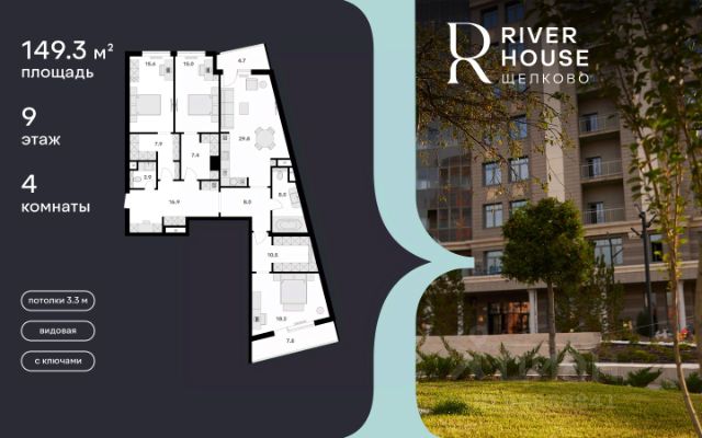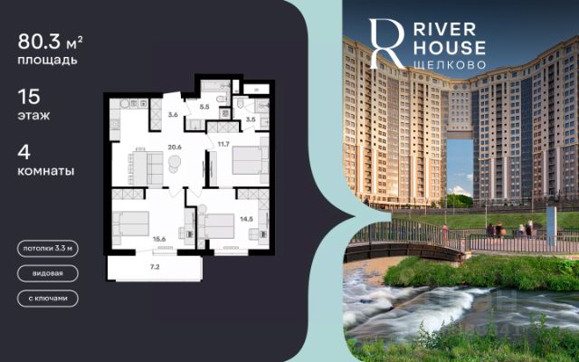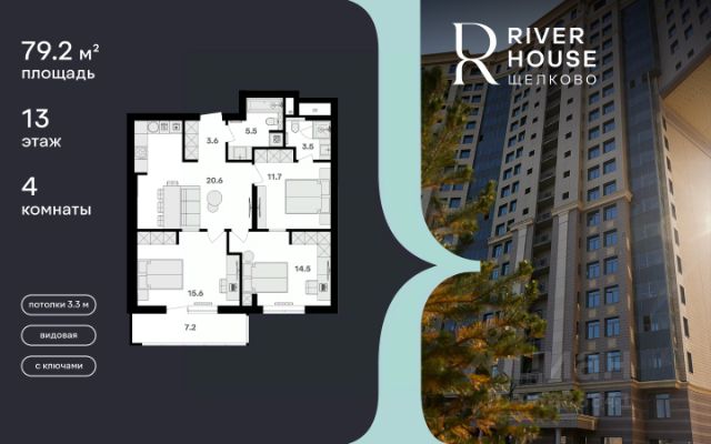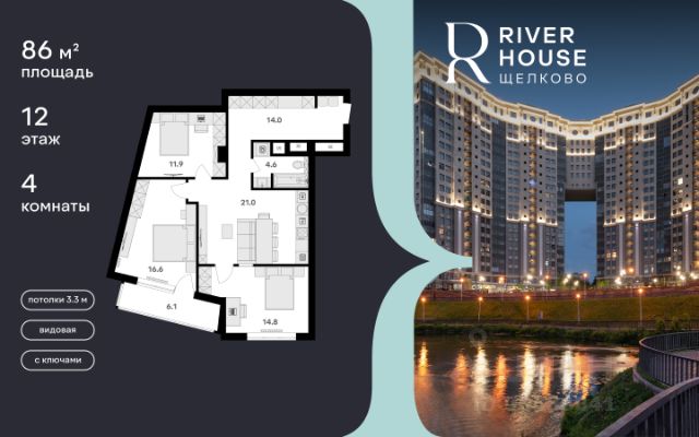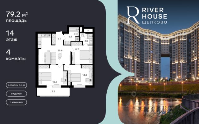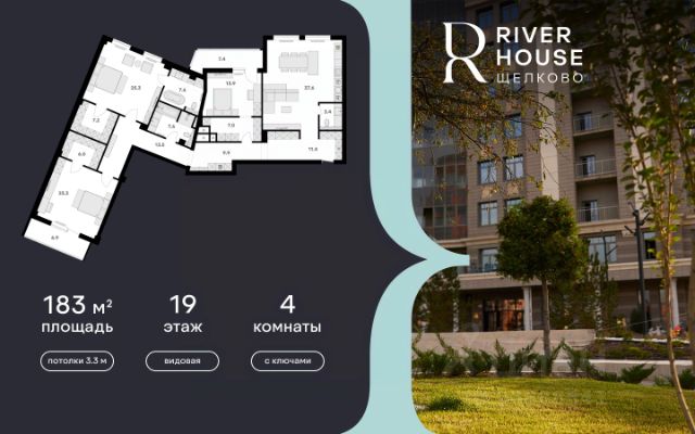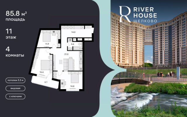 Просторная, светлая семейная квартира в жилом комплексе бизнес-класса RIVER HOUSE Щёлково! Семейная ипотека от 3.5%. Беспроцентная рассрочка. Индивидуальные дисконтные предложения. Дом сдан. Оформление в собственность. Ключи сразу после заключения договора купли-продажи. RIVER HOUSE Щёлково это изысканный жилой проект полноценного бизнес-класса с фокусом на качественное семейное проживание в самом центре города на набережной реки Клязьма. - Оригинальная архитектура, увеличенная площадь остекления, эксклюзивная вечерняя подсветка фасада. - Просторные семейные квартиры с высокими потолками 3.3 м в вариантах черновой, предчистовой и чистовой отделки. - Роскошные трехуровневые пентхаусы с открытыми террасами на кровле. - Лаунж-зона на кровле, где можно устроить уютный вечер с друзьями, отдохнуть и полюбоваться панорамными видами на город. - Вся необходимая инфраструктура и сервисы на первых двух этажах: детский сад, супермаркет, институт красоты, медицинский центр, стоматология, ПВЗ и многое другое. - В каждом подъезде 4 лифта один со спуском в паркинг, лобби с авторским дизайном, консьерж-сервисом и мягкой зоной ожидания. - Круглосуточная охрана, видеонаблюдение, бесключевая система доступа. - Двухуровневый подземный паркинг на 540 машино-мест и 260 кладовых. - Закрытый двор-парк без машин с ландшафтным дизайном, детскими и спортивными площадками, летним амфитеатром и собственным спуском к набережной. - Шаговая доступность ко всей инфраструктуре центра города: школы, детские сады, гимназии, кафе и рестораны, кинотеатр, перинатальный центр. - Три благоустроенных парка, в один из которых - Солнечные часы - можно спуститься со двора дома. RIVER HOUSE Щёлково это дом-впечатление и особый статус, которые останутся вашим детям и станут частью фамильной истории.