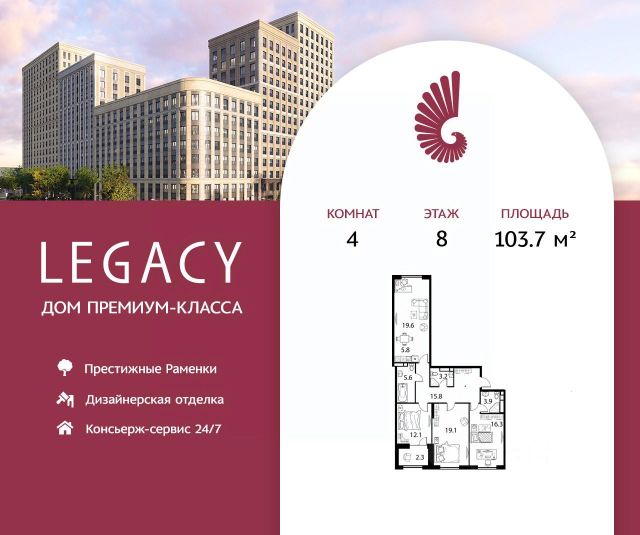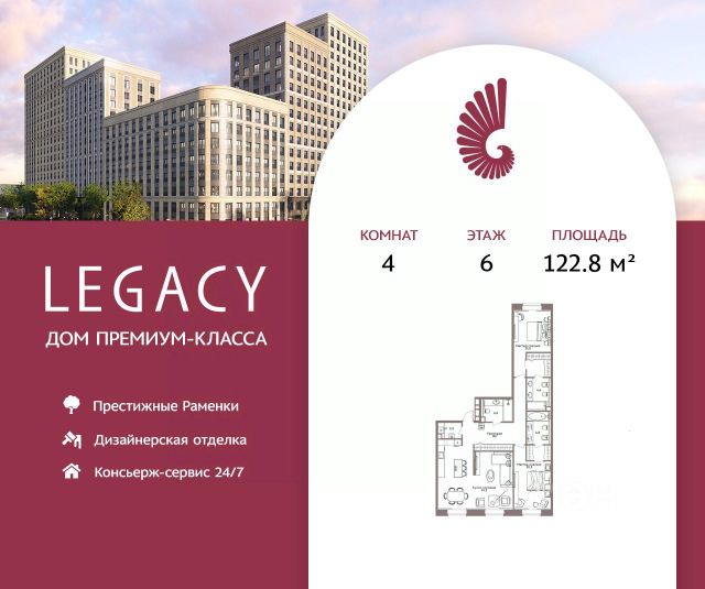 Просторная светлая квартира общей площадью 120,2 м2 на 10-м этаже премиального жилого комплекса Legacy, расположенного в прекрасном зеленом районе Раменки. Отличная функциональная планировка: кухня-гостиная, 3 мастер-спальни со своими с/у, продуманной гардеробной зоной и эргономичными системами хранения; гостевой санузел и просторный холл, который с первых шагов погружает в безупречное пространство изысканности и уюта. Большое количество естественного света и удобное расположение комнат гарантирует будущим жильцам исключительный комфорт. Сердцем квартиры является кухня-гостиная, общей площадью 23.4 м2., для теплых вечеров в кругу семьи. Для тех, кто привык выбирать лучшее, помимо опции White Box также доступны два варианта отделки от застройщика: Premium и Elite премиальные материалы в отделке, мебель от европейских производителей, и освещение индивидуального изготовления. Жилой комплекс Legacy располагается на Мичуринском проспекте в районе с развитой инфраструктурой, богатой историей и высокой транспортной доступностью. Москва-река, Ботанический сад МГУ, главный корпус МГУ и Воробьевы горы на расстоянии прогулки от комплекса. Проект состоит из 9 секций переменной этажности от 8 до 17 этажей. В каждой секции не более 5 квартир на этаже, что обеспечивает высокий уровень приватности. Архитектура Проект Legacy разработан архитектурным бюро Speech. Его строгая лаконичность дополнена современными стандартами роскошной и комфортной жизни это бессменная классика, которая всегда вне моды. Благоустройство Свой приватный двор-сквер площадью 3 600 м2 с пространствами для всех возрастов: на территории располагаются игровые площадки, детский городок, песочница, воркаут-зоны, батуты, места для отдыха, лабиринты, настольный теннис и шахматные столы. Презентабельные лобби Дизайнерские лобби и холлы с премиальной отделкой. Изысканный стиль и высококачественные европейские материалы, отражающие высокий статус резидентов дома. Инфраструктура в доме Магазины, салон красоты, спортивная студия на первом этаже. А также ресторан Seasons, который позволяет разнообразить рацион и сделать каждый ужин особенным. Комфорт и безопасность Премиальный консьерж-сервис 24/7, круглосуточная охрана, видеонаблюдение, система СКУД, закрытый охраняемый паркинг и эксклюзивное мобильное приложение для решения бытовых вопросов резидентов. Продам 4-комнатную квартиру рядом с метро Ломоносовский проспект.