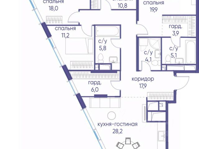 Просторная светлая квартира общей площадью 120,2 м2 на 10-м этаже премиального жилого комплекса Legacy, расположенного в прекрасном зеленом районе Раменки. Отличная функциональная планировка: кухня-гостиная, 3 мастер-спальни со своими с/у, продуманной гардеробной зоной и эргономичными системами хранения; гостевой санузел и просторный холл, который с первых шагов погружает в безупречное пространство изысканности и уюта. Большое количество естественного света и удобное расположение комнат гарантирует будущим жильцам исключительный комфорт. Сердцем квартиры является кухня-гостиная, общей площадью 58,88 м2., для теплых вечеров в кругу семьи. Для тех, кто привык выбирать лучшее, помимо опции White Box также доступны два варианта отделки от застройщика: Premium и Elite премиальные материалы в отделке, мебель от европейских производителей, и освещение индивидуального изготовления. Жилой комплекс Legacy располагается на Мичуринском проспекте в районе с развитой инфраструктурой, богатой историей и высокой транспортной доступностью. Москва-река, Ботанический сад МГУ, главный корпус МГУ и Воробьевы горы на расстоянии прогулки от комплекса. Проект состоит из 9 секций переменной этажности от 8 до 17 этажей. В каждой секции не более 5 квартир на этаже, что обеспечивает высокий уровень приватности. Архитектура Проект Legacy разработан архитектурным бюро Speech. Его строгая лаконичность дополнена современными стандартами роскошной и комфортной жизни это бессменная классика, которая всегда вне моды. Благоустройство Свой приватный двор-сквер площадью 3 600 м2 с пространствами для всех возрастов: на территории располагаются игровые площадки, детский городок, песочница, воркаут-зоны, батуты, места для отдыха, лабиринты, настольный теннис и шахматные столы. Презентабельные лобби Дизайнерские лобби и холлы с премиальной отделкой. Изысканный стиль и высококачественные европейские материалы, отражающие высокий статус резидентов дома. Инфраструктура в доме Магазины, салон красоты, спортивная студия на первом этаже. А также ресторан Seasons, который позволяет разнообразить рацион и сделать каждый ужин особенным. Комфорт и безопасность Премиальный консьерж-сервис 24/7, круглосуточная охрана, видеонаблюдение, система СКУД, закрытый охраняемый паркинг и эксклюзивное мобильное приложение для решения бытовых вопросов резидентов.