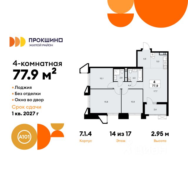 Продается четырехкомнатная квартира 558 в новостройке Жилой квартал "Прокшино" по адресу Москва, ТиНАО, Новомосковский АО, Сосенское С/П, Москва, Новомосковский административный округ, район Коммунарка, жилой комплекс Прокшино, 7.1.3. Общая площадь квартиры - 120.50 кв. м., этаж 10 из 10, секция 9. Тип проекта, по которому построен дом - монолит, компания-застройщик - ООО "А101". Стоимость квартиры - 45059770 Р. Срок сдачи - 4 квартал 2027. ПРЕДЛОЖЕНИЯ ОТ ЗАСТРОЙЩИКА В ФЕВРАЛЕ 2026: Скидки до 10% на все квартиры. Только в офисах продаж до 28 февраля. Ипотека от 13,9 % для всех! На весь срок. "Семейная ипотека" вернулась. Ставка от 3,5 % на весь срок! Без удорожания! Выгодное ипотечное комбо: Ипотека от 2200 р./мес. и от 6 % после рождения ребёнка! Ипотека для всех "Держи пять!" - ставка 5 % на 2 года! *более подробную информацию по скидкам и акциям уточняйте в отделе продаж ЖК "Прокшино" строится на юго-западе Москвы всего в 500 м от одноимённой станции метро, что обеспечивает быстрый и удобный доступ в любую точку столицы. Вдоль живописного пруда почти на километр протянулась благоустроенная набережная. Монолитные дома комфорт- и бизнес-класса - узнаваемой выразительной архитектуры, с архитектурно-художественной подсветкой фасадов. Пешеходный мост через пруд - украшение района и главный путь от метро. На берегу обустроены зоны отдыха с качелями, деревянными настилами, шезлонгами и тренажёрами. Зелёные дворы свободны от машин. В районе реализуется проект благоустройства "Природа - в каждый двор!". Рядом с "Прокшино" появятся всесезонный горнолыжный курорт, аквапарк с дайвинг- и сёрфинг-центром. Развивается крупный бизнес-квартал. В пешей доступности от дома открываются детские сады, активно строится новое здание одной из лучших школ Москвы. Работают магазины, кафе, бытовые сервисы. Через район проходят веломаршруты и прогулочные дорожки. Преимущества "Прокшино": - 500 м до метро "Прокшино" - благоустройство "Природа - в каждый двор!" - набережная Хованского пруда - уникальная инфраструктура - "Школа Ямбурга" (топ-50 Москвы)