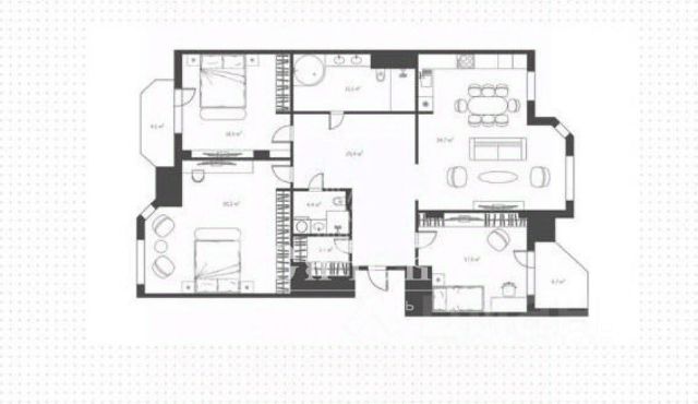 Общая площадь квартиры 104,2 кв. м, плюс к этой площади идет большая летняя терраса площадью 80 кв. м. Высокие потолки в 3 метра создают ощущение простора и света.