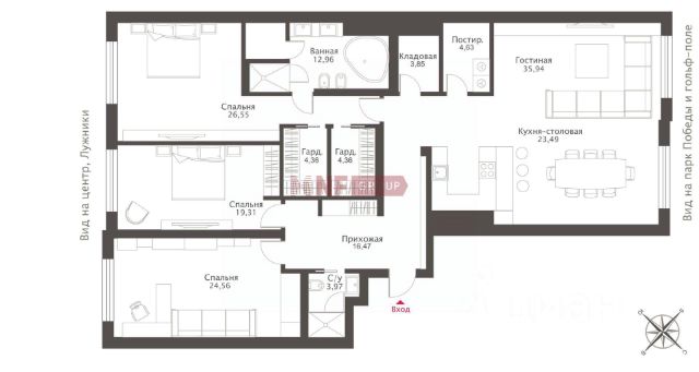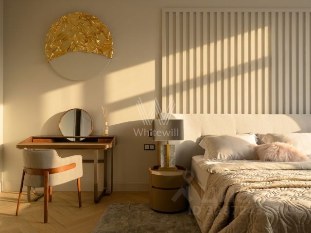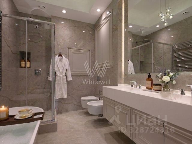 3 изолированные комнаты, гостиная, кухня, кладовая, 2 санузла (в одном санузле расположен Хаммам, в другом - широкая угловая ванная).