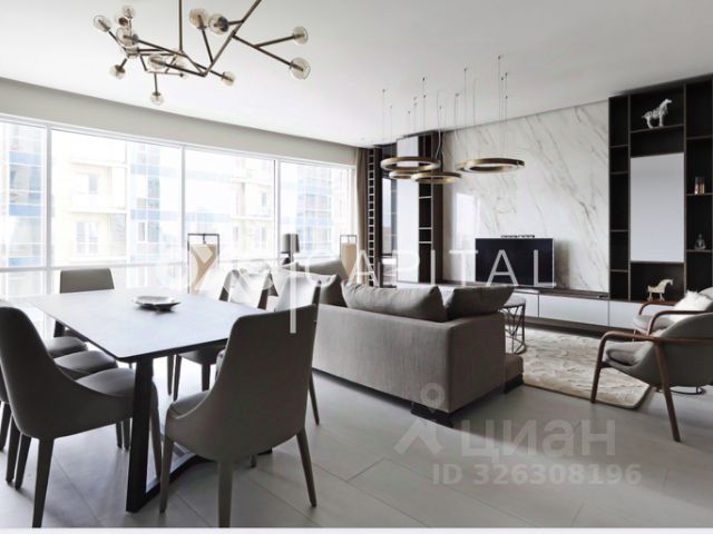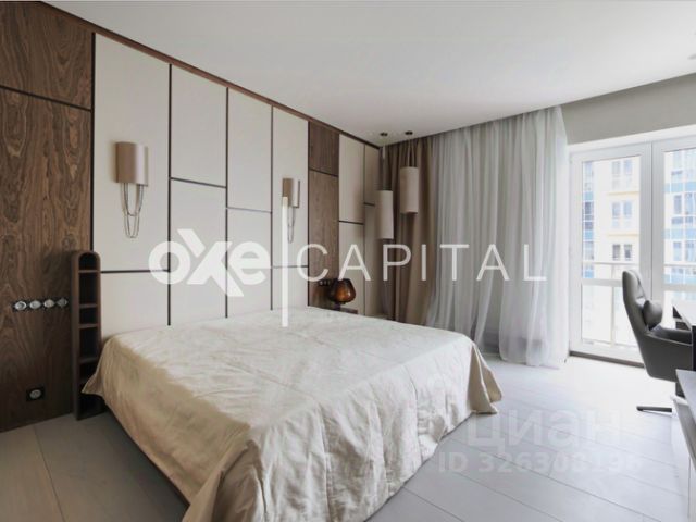 В жилом комплексе Кутузовская Ривьера предлагается в продажу квартира с отделкой в дворцовом стиле с лучшими панорамными видами: Москва сити, Парк Победы, МГУ, Останкинская башня, Волынский лес. Функциональная планировка полностью соответствует канонам стиля: большая светлая гостиная, отдельная кухня-столовая. Из гостиной Вы попадаете в просторный холл, далее-приватная зона, состоящая из просторной комнаты для гостей, кабинета и большой хозяйской спальни с собственной гардеробной и ванной комнаты. В отделке квартиры использованы дорогие натуральные материалы: потолок лепнина ручной работы (гипс) с покрытием золотом Verseiiies Gold 23 karat, пол паркет из дуба с инкрустацией ценными породами дерева, камень итальянский мрамор (слэбы толщиной 3 см). В квартире много авторской художественной резьбы по мрамору. Потолки расписаны высококлассными художниками. Стены покрыты одними из самых дорогих шелковых обоев производства Франции, также частично присутствует художественная роспись. Кухня оснащена бытовой техникой Kuppersbusch. В санузлах сантехника производства компаний JADO, THG, фаянс - Devon Devon, Villeroy Boch. Квартира оборудована полноценной климатической системой. Домашний кинотеатр, аппаратура производства Швейцарии, встроенная акустика. Квартира полностью укомплектована мебелью самых известных и дорогих мебельных фабрик: Angelo Cappellini, Oak, Giorgio Piotto, Jumbo, Aldo Moletta, Bianchini Capponi, BandeccaBarocco, Cabiate Produce. ЖК Кутузовская ривьера жилой комплекс класса премиум, расположен по адресу: г. Москва, ЗАО, ул. Нежинская, д. 1, корп. 1,2,3,4, - между природным заказником Долина реки Сетунь и Волынским лесопарком, недалеко от Кутузовского проспекта. Территория жк свободна от автомобилей, обустроена ландшафтным парком с беседками, скамейками, детскими и спортивной площадкой. Особенную гордость представляет рукотворная речка с несколькими группами фонтанов. Большая площадь панорамного остекления, рациональные планировки, высота потолков 3,1 м, бесшумные скоростные лифты Shindler, лобби корпусов с высокими потолками и межквартирные холлы отделаны деревом, металлом и мрамором Имперадор. Инфраструктура: детский сад, фитнес студия, салон красоты. Единый четырехуровневый подземный паркинг (доступ лифта на всех уровнях), огороженная охраняемая территория.