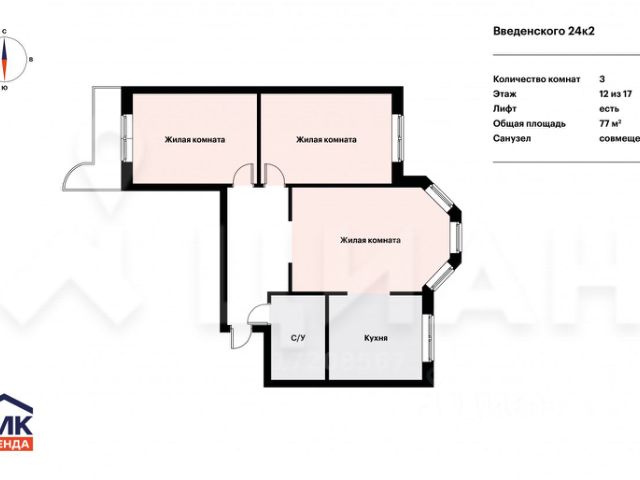 Квартира находится на 17-м этаже 17-ти этажной секции.