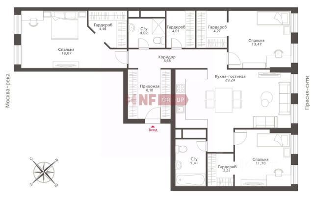 -25% на исполнение вашей мечты! (указанная цена уже включает скидку) Один из последних эксклюзивных апартаментов в жилом комплексе Neva Towers в Москва-Сити. Предлагается апартамент с Готовой отделкой в сданном и заселённом комплексе. Пространство полностью готово к проживанию, включая финишную отделку, установленную кухню с техникой и оборудованные санузлы. Площадь — 226,4 м², 51 этаж, шикарный вид, который выходит на юго-запад Москвы! Neva Towers — единственный жилой комплекс в Москва-Сити с собственным парком на уровне 4 этажа. Инфраструктура парка включает: • открытый бассейн • шезлонги и лаунж-зоны • детскую площадку • прогулочные и спортивные зоны (йога, места для отдыха и загара, открытая воркаут зона и др.) Расположен на 1-м Красногвардейском проезде. Комплекс имеет: • огороженную и приватную территорию • уникальный сквозной проезд к башням — без пропусков и препятствий • зону быстрой посадки/высадки • многоуровневый паркинг для жителей и гостей Neva Towers полностью заселён. Комплекс предоставляет инфраструктуру уровня премиального отеля: • фитнес-клуб с бассейном и открытым джакузи • SPA-зоны, закрытый кинозал • рестораны и кафе (Кофемания, Ivanka, TimeLess, Bluefin и др.) • химчистка, аптека, private bank, салон красоты и многое другое Готовое пространство в одном из самых престижных и инвестиционно привлекательных жилых комплексов Москвы. Остались единичные предложения. Продается 4-комнатная квартира станция Шелепиха (МЦК).