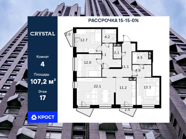 Стоимость указана с учетом скидки 9%, ваша выгода составит 7 249 798 рублей! Полная стоимость квартиры без скидки 80 553 310 рублей. В продаже 4-комнатная квартира в готовом клубном доме бизнес-класса "Интонация". Квартира с высокими потолками с мастер-спальней, окном в ванной комнате, просторной кухней и постирочной. Условия покупки: - выгода до 7,2 млн - семейная ипотека - рассрочка на 6 месяцев - Trade-in "Интонация" состоит из двух 21-этажных корпусов и приватной внутренней территории. На стилобате расположен ландшафтный сад с авторским благоустройством. В продаже финальный пул квартир бизнес-класса с мастер-спальнями, возможностью установки камина, окнами в ванных комнатах, увеличенной высотой потолков, а также просторными террасами и лоджиями. "Интонация" расположена в экологичном районе Щукино на северо-западе Москвы. Вокруг Щукинский лесопарк, Всехсвятская роща и парк "Покровское-Стрешнево". Одно из главных преимуществ дома - сочетание близости к природе и развитой инфраструктуры: - до метро "Щукинская" - 10 минут пешком - до центра - 10 минут на автомобиле Рядом детские сады и школы, включая знаменитую Курчатовскую. Недалеко расположены корпуса Финансового университета и других ведущих вузов. В пешей доступности - поликлиники, супермаркеты, фитнес-центры и спортивные секции. Собственная инфраструктура "Интонации" - ресторан итальянской кухни, студия фитнеса и пилатеса, супермаркеты, один из которых круглосуточный, салон красоты, барбершоп и химчистка. Приватная территория "Интонации" разделена на две тематические зоны: внутренний двор с детскими и спортивными площадками и ландшафтный сад на террасе. Главным акцентом стал парящий водоем с подвижной гладью. Двухуровневый паркинг рассчитан на 186 автомобилей и 27 гостевых мест. Есть возможность зарядки электромобилей, удобный подъезд для грузового транспорта, келлеры для хранения личных вещей и помещение для велосипедов. 4-комнатная квартира в округе СЗАО в Москве.