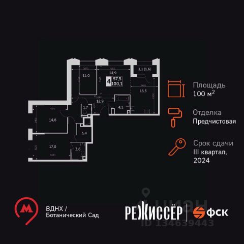 Прямая продажа от застройщика! Жилой Комплекс премиум-класса. Продаётся 4-к квартира номер 968 общей площадью 135.8 кв.м. на 35-м этаже 38 этажного дома. Без отделки. Цена с учётом скидки! Особенности квартиры: - Мастер-зона с гардеробной. Просторное место для отдыха и удобного хранения вещей. - Мастер-зона с санузлом. Уют и комфорт в одном пространстве. - Просторная спальня, в которой можно разместить большую кровать. - Угловая планировка - больше пространства для ваших идей. - Увеличенное количество окон - дополнительное освещение и свежий воздух. - Панорамное окно (1 и более) - раскрывает просторы вашего дома. - Гостевой санузел - комфорт и удобство для ваших гостей. - Раздельный санузел - больше удобства для всех членов семьи. - Евроформат - просторное и удобное жилье с отличной планировкой. - Гибкая планировка - создайте пространство по своему вкусу. - Место для игры/занятия спортом - идеальное пространство для активных детей. - Дополнительный вход - удобство для семьи и гостей. - Увеличенная высота потолков - ощущение простора и легкости. - Можно оборудовать 2 или более рабочих места - пространство для нескольких человек. - Двухуровневая квартира - пространство и стиль в одном. - Второй свет - уникальная атмосфера с открытыми пространствами. - Просторная мягкая зона - комфорт и уют для отдыха всей семьи. - Наличие острова на кухне - удобство и стиль для вашей кухни. - Возможность добавить спальное место - дополнительный комфорт для гостей. - Гардеробная - удобство для хранения и организации вещей. - Ниша под шкаф - компактное и удобное место для вещей. - Лоджия - уютное место для отдыха и тишины. - Тёплая лоджия - пространство для отдыха в любое время года. Информация о комплексе: Расположение корпусов комплекса в виде трехконечной звезды, а также разная высотность корпусов позволили сохранить отличные виды практически для всех квартир, находящихся выше уровня деревьев. Тем более видовые характеристики района вдохновляют на достижение новых горизонтов. В каждой квартире подключен базовый пакет Умная квартира забудьте о беспокойстве о протечке; настройте свои сценарии управления техникой и электричеством; общайтесь с Умной квартирой голосом. А наличие кладовых позволит вам поддерживать идеальный порядок и уют в вашей квартире! Транспортная доступность: До метро "Проспект мира" - 3 минуты пешком, 4 минуты до СВХ, 9 минут до ТТК, 11 минут до МКАД, 12 минут до Садового кольца Внутренняя инфраструктура: Внешняя территория комплекса условно делится на три зоны. Основная входная группа представляет собой открытую зону коммерческих помещений (кофейня, аптека, салон красоты). В закрытой зоне внутреннего двора время течет как в замедленной съемке. Скамейки, шезлонги, пуфы, садовые качели приглашают расслабленно провести часок-другой наедине с собой или в небольшой компании. В восточной части территории расположены игровые площадки для детей разных возрастов, а также спортивные площадки. Авторам проекта а Продам 4-комнатную квартиру на улице Вильгельма Пика в Москве.