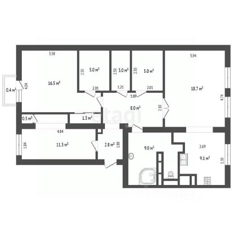 Планировка: кухня, гостиная, три жилые комнаты, два санузла ( ванная, душевая).