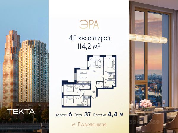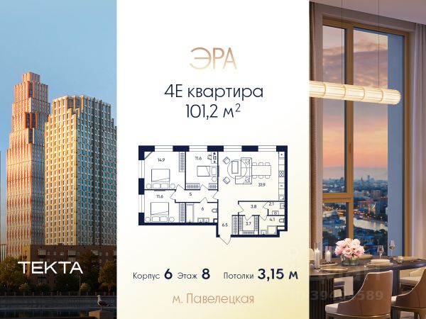 Рассрочка 0% с платежом от 250 000 ₽ в месяц. 4-комн. квартира в ЖК "ЭРА" на 8 этаже в 37 этажном здании Корпус 6. Общая площадь: 101.2 кв.м., жилая: 61.80 кв.м. Высота потолков 3.15 м. Современный премиум-квартал ЭРА на Дербеневской набережной, формирующий новый архитектурный облик Даниловского района Москвы. Жилой комплекс из шести высотных корпусов выполнен в актуальной интерпретации стиля ар-деко, где ритмичные линии фасадов, натуральный мрамор и изысканные орнаменты создают гармоничный и запоминающийся образ. ЭРА предлагает жителям единый просторный закрытый двор. Инфраструктура двора включает разнообразные детские игровые площадки, зоны для занятий спортом, а также места для спокойного отдыха — в всесезонном зеленом лабиринте или яблоневом саду. Для озеленения территории планируется высадка около 3000 деревьев и кустарников. Их сохранность обеспечат система автополива, а для комфорта в холодное время года малые архитектурные формы будут оборудованы подогревом. Вторая очередь комплекса включает три корпуса высотой от 37 до 52 этажей. Впечатляющие входные группы, разработанные бюро ХААСТ, встречают жителей потолками 8,8 метров. В лобби создана атмосфера уюта благодаря индивидуальной ароматизации и музыкальному сопровождению. Здесь же обустроена кофейная зона с профессиональной кофемашиной, а для дополнительного удобства установлен постамат. Высокий стандарт чистоты в любое время года обеспечивают роботы-уборщики, что подчеркивает технологичность комплекса ЭРА. Для комфортного подъезда такси перед каждым корпусом предусмотрены специальные зоны подачи машины и высадки пассажиров. Подземный паркинг на 285 мест. Ключевое преимущество — превосходная локация в развивающемся районе с готовой инфраструктурой. Всего в 5 минутах от Садового кольца, в шаговой доступности от Замоскворечья и набережной Москвы-реки, вы сможете наслаждаться динамикой городской жизни. При этом в самом комплексе на первых этажах будут работать кафе, магазины, салоны красоты и детские образовательные пространства. ЭРА — это гармоничный симбиоз статусного адреса, безупречного сервиса и приватности для жизни вашей мечты. Купить 4-комнатную квартиру в округе ЮАО в Москве.