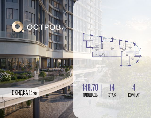 • ✓ В базе объявлений Циан 70 4-комнатных квартир в острове Жилой комплекс в Москве.