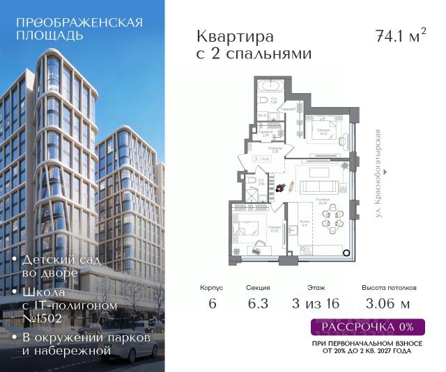 - 12 мин. пешком до парка Сокольники