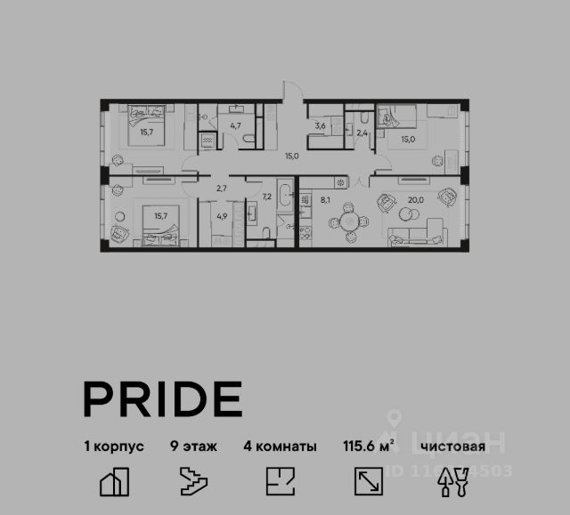 В премиальном жилом квартале PRIDE продается 4-комнатная квартира в 1 корпусе, на 11 этаже, в секции 4. Её общая площадь составляет 120.5 м². Пространство включает 3 уютные спальни 15,5 м², 15,8 м², 15,2 м², просторную кухню-гостиную 29,3 м² и ванную комнату 8,5 м². Удобная локация: Жилой квартал расположен в 15 минутах от Цветного бульвара в историческом районе Марьина Роща. До любой точки города быстро и удобно добраться, как на общественном транспорте, так и на авто — комплекс находится всего в 3 минутах от ТТК и в пешей доступности от метро. Яркая архитектура с переменной высотностью от 7 до 22 этажей от именитого бюро APEX формирует запоминающийся облик проекта. Развитая инфраструктура: Территория квартала делится на несколько отдельных частей: открытый просторный бульвар 3500 м² для прогулок и два внутренних камерных двора. Внутри предусмотрены площадки для спорта, места для игр и тихие пространства для отдыха и неторопливого общения. Коммерческие и торговые помещения спроектированы на уровне первых этажей: супермаркеты, магазины, рестораны и кофейни, барбершоп, спа-салон и другие сервисные точки. Образовательный центр со школой на 257 учеников и детским садом на 112 мест на собственной территории квартал - идеальное решение для семей с детьми. Таким образом, внутренняя инфраструктура PRIDE обеспечит все базовые потребности будущих жителей. Благоустроенная территория: Ландшафтный дизайн с многоуровневым и замысловатым озеленением будет радовать жителей на протяжении всех сезонов — богатая флора дворов включает в себя несколько десятков видов растений. Лобби как в лучших отелях мира: На первых этажах резидентов и гостей встретят лобби с авторским дизайном от Sundukovy Sisters, бюро знаменито своими работами для отелей и ресторанов премиум-класса во всем мире. Надежный застройщик: Девелопер PIONEER — компания с 22-летней историей. В портфеле — 40 проектов жилой, коммерческой, социальной и многофункциональной недвижимости в Москве и Санкт-Петербурге. С 2001 года было реализовано 2,9 млн м². В настоящее время 1,6 млн м² находятся в стадии проектирования и строительства. Среди новых знаковых проектов девелопера — премиальные жилые кварталы и деловые объекты класса A.