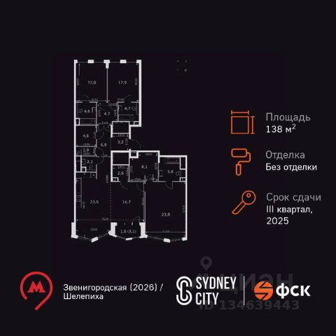 Продаётся четырехкомнатная квартира от застройщика: общая площадь 221.20 м², жилая 68.70 м², кухня 68.60 м², 19, жилой квартал "Остров 7", корпус 6 (7 квартал) (секция 2). срок сдачи: 4-кв. 2025. , 4 санузла: 2 раздельных и 2 совмещенных. В жилой зоне 2 больших окна на одну сторону, хорошая инсоляция. Позвоните сейчас и забронируйте квартиру! Купите квартиру в доме у прибрежного парка, в квартале ОСТРОВ.7. Это семь корпусов премиум- и бизнес-класса в одном из лучших мест ОСТРОВА - между бульваром и парком, поблизости от реки. Стильные корпуса имеют узнаваемый вид благодаря бионической пластике фасадов, приподнятых над землей. Для жителей предусмотрены детский клуб, фитнес-рум, коворкинг, переговорные, лаунжи. На крышах устроены видовые общественные пространства с зонами для отдыха и спорта. Двор расположен на двух уровнях: нижний ландшафтный парк и верхняя городская терраса. ОСТРОВ.7 - часть жилого комплекса на западе Москвы, в 15 минутах езды от центра. Это настоящий заповедник посреди большого города, в окружении реки и 650 га заповедников. Здесь все необходимое находится по соседству: от детского сада до супермаркета, от фитнес-зала до серфинг-центра. На территории созданы все условия для отдыха и общения: клубная инфраструктура в домах и дворы-парки, набережные и променады, маршруты для спортсменов, детей и возрастных жителей. В нескольких минутах ходьбы расположена станция метро "Терехово" БКЛ. На автомобиле - 10 минут до Москва-Сити и 15 минут до Садового кольца.