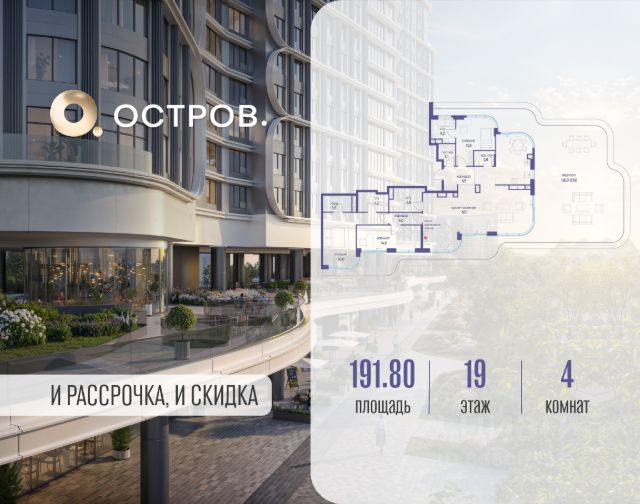 Продаётся четырехкомнатная квартира от застройщика: общая площадь 132.00 м², жилая 29.76 м², кухня 52.30 м², 12, жилой квартал "Остров 4", корпус 5 (4 квартал) (секция 4). срок сдачи: 4-кв. 2025. , 3 санузла: 1 раздельный и 2 совмещенных. В жилой зоне 2 больших окна на одну сторону, хорошая инсоляция. Позвоните сейчас и забронируйте квартиру! Не упустите возможность жить в доме у реки, в квартале ОСТРОВ.4. Это четыре корпуса премиум-класса на первой прибрежной линии и три корпуса бизнес-класса - на второй. Дома - эффектные образцы бионической архитектуры с каскадной линией фасадов и большими площадями остекления. Для жителей предусмотрены детский клуб, фитнес-рум, лаунж, кинотеатр и приватные места для деловых встреч. Во дворе созданы три тематических парка: для активного отдыха, для релакса и для общения. Большая площадь озеленения, креативные детские зоны, воркаут, уютные площадки в саду и у воды. ОСТРОВ.4 - часть жилого комплекса на западе Москвы, в 15 минутах езды от центра. Это настоящий заповедник посреди большого города, в окружении реки и 650 га заповедников. Здесь все необходимое находится по соседству: от детского сада до супермаркета, от фитнес-зала до серфинг-центра. На территории созданы все условия для отдыха и общения: клубная инфраструктура в домах и дворы-парки, набережные и променады, маршруты для спортсменов, детей и возрастных жителей. В нескольких минутах ходьбы расположена станция метро "Терехово" БКЛ. На автомобиле - 10 минут до Москва-Сити и 15 минут до Садового кольца.