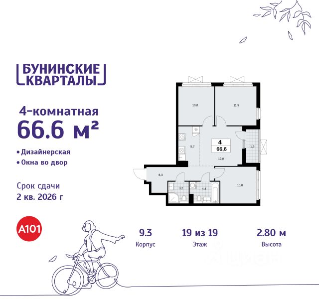 Продается четырехкомнатная квартира 1008 в новостройке ЖК "Бунинские кварталы" по адресу Москва, ТиНАО, Новомосковский АО, Сосенское С/П, жилой комплекс Бунинские Кварталы, 9.4, район Коммунарка, Новомосковский административный округ, Москва. Общая площадь квартиры - 66.60 кв. м., этаж 19 из 19, секция 10. Тип проекта, по которому построен дом - монолит, компания-застройщик - ООО "А101". Стоимость квартиры - 19830816 Р. Срок сдачи - 2 квартал 2026. ПРЕДЛОЖЕНИЯ ОТ ЗАСТРОЙЩИКА В НОЯБРЕ 2025: Ипотека от 13,9 % для всех! На весь срок. "Семейная ипотека" вернулась. Ставка от 3,5 % на весь срок! Без удорожания! Выгодное ипотечное комбо: Ипотека от 2200 р./мес. и от 6 % после рождения ребёнка! Ипотека для всех "Держи пять!" - ставка 5 % на 2 года! *более подробную информацию по скидкам и акциям уточняйте в отделе продаж ЖК "Бунинские кварталы" строится на юго-западе Москвы. Монолитные дома в лаконичной стилистике гармонируют с живописной природой. Из любой точки района удобно добираться до природных объектов, ключевых транспортных узлов, крупных торговых, спортивных, деловых и медицинских центров. Концепция уникального благоустройства района - "Выходи гулять!". Здесь появятся эстрада для районных творческих мероприятий, спортивные и игровые площадки, скейт-парк, дружелюбные пространства для домашних питомцев, благоустроенная набережная Ивановского пруда. В районе формируется собственная развитая инфраструктура: современные школа на 1100 мест и 2 детских сада на 540 малышей, магазины у дома и сетевые супермаркеты, фитнес, кафе, салоны, детские развивающие центры. Крытый каток "Самолёт Арена" - в 10 минутах пешком. За 15 минут можно дойти до действующей станции метро "Потапово". Предусмотрены удобные автомобильные выезды на проспект Куприна и улицу Александры Монаховой. Особенности "Бунинских кварталов": - ст. метро "Потапово" - 15 минут пешком - своя школа и детские сады - безопасные дворы без машин с системой контроля доступа - насыщенная инфраструктура - в шаговой доступности и на первых этажах домов