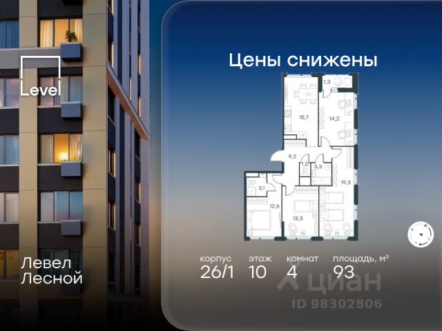 Цена указана с учётом скидки при 100%-й оплате, несубсидированной ипотеке, рассрочке (кроме программы "Рассрочка 0%"). В районе, утопающем в густой зелени лесов, многочисленных парков и скверов, продаётся 4-комнатная квартира площадью 96.60 кв.м с предчистовой отделкой. Квартира расположена на 9 этаже в жилом комплексе комфорт-класса Левел Лесной (компания Level Group/Левел групп). Отличная транспортная доступность: - 25 мин. пешком до станции метро "Пятницкое шоссе"; - 28 мин. на автобусе до станции метро и МЦД-2 "Волоколамская"; - 11 мин. на авто до МКАД; - 25 мин. на авто до ТТК. Продуманный архитектурный проект: - Концепция проекта Левел Лесной от бюро СПИЧ; - Высотность комплекса до 15 этажей с уникальными видами на лесные массивы и город; - Высота потолков до 3 м; - Современные окна высотой до 1,6 м, в части квартир предусмотрены окна в пол. Высота подоконников 0,6 м; Расположение: Жилой комплекс Левел Лесной строится в зелёной зоне ближайшего Подмосковья, г.о. Красногорск в посёлке Отрадное. Шаговая и автомобильная доступность до метро и больших транспортных артерий города. За 25 минут вы дойдёте до станции метро "Пятницкое шоссе", а за 20 минут на машине сможете доехать до станции метро "Тушинская". Район окружен роскошной зеленью лесов и парковых зон, занимающих территорию свыше 1 000 гектаров. Помимо благоприятной экологии, здесь множество возможностей для активного отдыха и поддержания физической формы. Облагороженная территории с полностью развитой инфраструктурой. На территории проекта находится детский сад и школа "Светлые Горы", которая входит в список лучших частных школ от Forbes Education (по данным на 2023г.). Кроме того, в пешей доступности расположено ещё 8 детских садов, а также запланировано открытие современной муниципальной школы. В непосредственной близости находятся сетевые супермаркеты и локальные магазины, аптеки, клиники, почта, библиотека, салоны красоты, рестораны, спортивные и творческие секции, развивающие детские центры. В 12 минутах пешком расположен торговый парк "Отрада" с продуктовым и строительным гипермаркетами, магазинами, кинотеатром и развлечениями для детей. Внутренняя инфраструктура: Мы знаем, как важно, чтобы магазины и сервисы были всегда рядом. В сданных корпусах жилого комплекса Левел Лесной уже расположена полностью готовая развитая инфраструктура. На первых этажах корпуса 27 предусмотрено ещё 14 коммерческих помещений. Благоустройство: Продуманное пространство и аура приватного европейского городка рождают чувство лёгкости и расслабления у каждого, кто попадает на территорию проекта. Концепцию общественных площадок разработали в партнёрстве два архитектурных бюро: "Хайлайт Архитектура" (Highlight Architecture) и "Скейп" (Scape). В безопасных дворах без машин каждый обязательно найдёт себе место для вдохновения, отдыха и спорта.