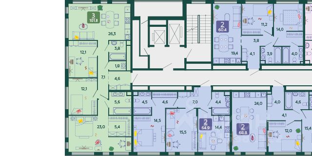 7-8 этажи - апартаменты (отдельный вход для жильцов);