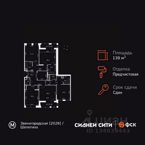 Прямая продажа от застройщика! Жилой Комплекс премиум-класса. Продаётся 4-к квартира номер 246 общей площадью 139.2 кв.м. на 20-м этаже 20 этажного здания. Предчистовая отделка. Цена с учётом скидки. Особенности квартиры: - Организуем показ в удобное для вас время! - Мастер-зона с санузлом. Уют и комфорт в одном пространстве. - Распашная планировка - отличное сочетание удобства и свободы. - Увеличенная ширина окна/окон - больше света и визуального простора. - Увеличенное количество окон - дополнительное освещение и свежий воздух. - Увеличенная высота окна - больше воздуха и света. - Гостевой санузел - комфорт и удобство для ваших гостей. - Душ помимо ванной - дополнительное удобство для вашей семьи. - Постирочная - организуйте пространство для стирки и сушки вещей. - Можно оборудовать рабочее место - комфорт для работы и учёбы. - Просторная кухня - место для семейных ужинов и кулинарных экспериментов. - Линейная кухня - функциональность и практичность в одном решении. - Просторная гардеробная - место для вашего личного пространства. - Ниша под шкаф - компактное и удобное место для вещей. - Лоджия - уютное место для отдыха и тишины. Квартира с предчистовой отделкой. Вам не придется заниматься черновыми и трудоёмкими работы, а чистовую отделку и дизайн - сделайте на свой вкус. Информация о комплексе: Премиум-класс на берегу Москвы-реки с панорамными видами. Всего 20 минут до Москва-Сити на речном трамвае без пробок. Умный дом с защитой от протечек и голосовым управлением. Современная звукоизоляция и технологии для комфорта. Прямой выход на набережную и уникальный дизайн. Транспортная доступность: В 50 м до новой станции метро "Звенигородская". Вторая улица от ЦАО и соседство с Москва-Сити. Все виды общественного транспорта, в том числе речные трамвайчики, в пешей доступности Внутренняя инфраструктура: Сердце квартала - центральный бульвар, где кипит жизнь. Престижные школы, вузы, магазины и развлечения в минутах езды. Рядом: муниципальные ДОУ и школы, включая с изучением английского, 5 медучреждений, ТРЦ "Хорошо!" и "Авиапарк", фитнес-клубы World Class, горнолыжные склоны "Лата Трэк", ледовый дворец и 7 природных парков. Квартира с предчистовой отделкой - ваш дизайн без черновых работ