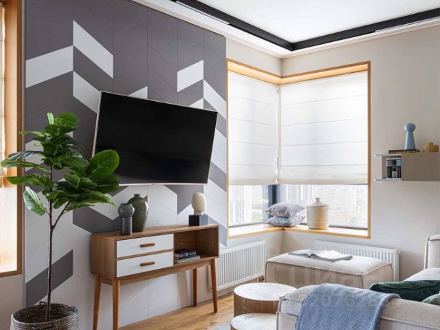 В комнатах и на лоджиях крупноформатный ламинат Бельгия, имитирующий природный камень.