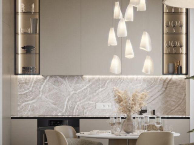 Теплые полы Devi в прихожей, гостевом санузле, основном санузле и на кухне, полы керамогранит Испания. Фартук на кухне также из керамогранита.