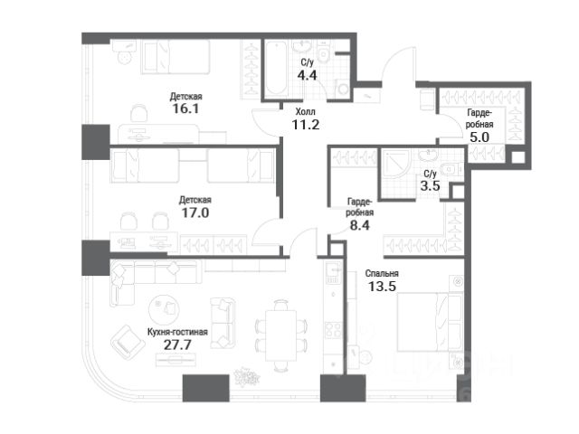 Цена указана с учётом скидки при 100%-й оплате, несубсидированной ипотеке, рассрочке (кроме программы "Рассрочка 0%"). Субсидированная семейная ипотека. Полная стоимость кредита 20,963 - 23,237% годовых. Ставка 3,9% годовых. Первоначальный взнос от 20,01%. Сумма кредита до 12 млн. руб. В северной части района Печатники продается 4-комнатная квартира площадью 114.00 кв.м без отделки. Квартира расположена на 68 этаже 68-этажного корпуса Корпус 3 в жилом комплексе комфорт-класса Level Южнопортовая (компания Level Group/Левел групп). Отличная транспортная доступность: - 10 мин. пешком до станции метро "Кожуховская"; - 20 мин. пешком до станции МЦК "Дубровка"; - 3 мин. на авто до ТТК; - 13 мин. на авто до Садового кольца; - 15 мин. на авто до Бульварного кольца. Продуманный архитектурный проект: - авторская архитектура от бюро СПИЧ; - уникальные виды на реку, парки и достопримечательности города; - высота потолков в квартирах до 6 м; - окна высотой до 1,87 м с высоким коэффициентом сопротивления теплоотдаче. Расположение: Level Южнопортовая строится в северной части района Печатники - самой приближенной к центру. Здесь будет сформирован новый район "Южный порт", где построят крупный жилой и общественно-деловой центр, аналогичный Москва-Сити. В течение 10-12 лет в этом месте появятся не только жилые дома, но и развитая инфраструктура для жизни и работы. А еще совсем рядом находится набережная Москвы-реки, где планируется построить причалы для речных трамвайчиков и канатную дорогу. Уже сейчас вокруг жилого комплекса работают десятки магазинов и торговых центров, рядом расположено 6 парков, среди которых музей-заповедник "Коломенское". В 10 минутах пешком - 2 муниципальных и 2 частных детских сада, 7 общеобразовательных школ. Внутренняя инфраструктура: Для отдыха жителей в каждом корпусе предусмотрено лобби, оснащенное местами для отдыха, гостевыми санузлами и лапомойками, а в отдельных корпусах - камином. За счёт больших окон и высоких потолков пространства будут наполнены воздухом и светом. На первых этажах жилого комплекса откроются кафе, магазины, салоны красоты, фитнес-центр. Для детей строятся собственные детский сад и школа. Благоустройство: Внутренний двор комплекса разработан совместно с бюро GAFA. Основная идея - создать аналог Центрального парка в Нью-Йорке, гармонично сочетая высотные здания и большое изолированное парковое пространство. Вся площадь двора-парка будет огорожена и составит более 2 га, из которых 45% - озеленение. Одним из самых важных ландшафтных элементов здесь станет небольшая речка, наполняющаяся во время дождя. Вокруг неё появится сеть из островов, внутри которых расположатся тематические зоны спорта и отдыха. Технологии и инженерия: - автоматическая передача в управляющую компанию показаний квартирных счётчиков; - телефонная связь, телевидение и интернет на базе оптической мультисервисной сети; - гостевой Wi-Fi в лобби и на территории двора; - единый ключ доступа для входа на территорию комплекса.