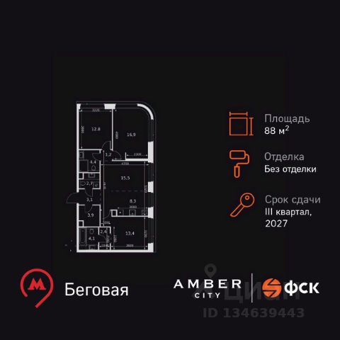 Дом сдан. Ключи в день покупки! В продаже 4-комнатная квартира площадью 132.60 м² с предчистовой отделкой на 49 этаже 49 этажного дома в корпусе Кристал. ЖК Симфония 34 - концептуально новый жилой комплекс премиум-класса с подземной парковкой, состоит из четырех башен высотой 36 - 54 этажа. Квартиры сдаются с базовой (предчистовой) отделкой MR BASE или дизайнерской чистовой отделкой MR READY. Высота потолков 3 - 6 метров, окна высотой до 2,6 м. Более 100 кладовых в подземной части ЖК и более 500 на этажах. Безопасность - Система контроля входа на территорию комплекса, биометрия - Система автоматического водяного пожаротушения и противопожарного водопровода, система пожарной вентиляции - Доступ на парковку при помощи системы распознавания автомобильных номеров, карточка для контроля доступа резидентов - Система видеонаблюдения - Круглосуточная связь через приложение, телефон, голосовые сообщения с охраной, консьержем, call-центр. Расположение Пешком - 6 минут до метро "Дмитровская" - 15 минут до Тимирязевского парка На машине - 5 минут до Савеловского вокзала и Аэроэкспресса в Шереметьево - 10 минут до Москва-Сити и Садового кольца Благоустройство - 70% территории отведены под зеленые насаждения и ландшафтный дизайн - Приватный Японский сад - Детские площадки с зонированием по возрасту - Clubhouse для резидентов - Wellness & SPA - Зона для пикника, зона с гамаками - Центральное лобби, ресторан, коммерческие помещения - Дополнительный вход/выход на территорию комплекса Окружение - В 10 минутах от Symphony 34 находится дизайн-завод Flacon, где регулярно проходят культурно-образовательные и развлекательные мероприятия - Тимирязевский парк расположен в 850 м. Площадь парка 232 га - Рядом расположен парк "Дубки", площадью 16,5 га. - В 15 минутах расположен Хлебозавод 9. Здесь находятся шоурумы брендов, кафе разных кухонь мира, образовательные проекты и площадки для мероприятиКомпания MR предлагает своим клиентам специальные условия приобретения квартир в рамках программ ипотечного кредитования от банков-партнеров.