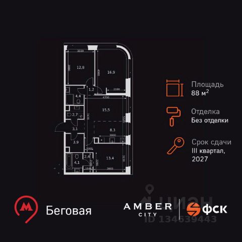 Функциональная семейная квартира с 3 спальнями. Квартира с окнами на две стороны света позволит вам встречать рассветы и провожать закаты. Просторная и функциональная кухня-гостиная 22,6 кв. м позволит проводить больше времени со своей семьей и приглашать любое количество гостей. Живописный вид из спален на сердце нашего района - сквер "Березовая Аллея", перед вами не окна соседнего дома, а зелень и красота деревьев. Благодаря просторным комнатам, можно добиться не только удобного планирования функциональных зон, но и дать волю собственным архитектурным взглядам и вкусам. "Фестиваль Парк" это продуманный до мелочей жилой комплекс, окруженный зелеными парками и живописными прудами. Настоящая мечта, которая стала реальностью. ЖК "Фестиваль Парк" разместился в престижном Левобережном районе Москвы в двух минутах ходьбы от метро "Речной вокзал". Это одно из лучших мест столицы с точки зрения экологии - вокруг домов разбиты парки и скверы. В пешей доступности от комплекса находятся Парк Дружбы, Фестивальные пруды и набережная Химкинского водохранилища. Преимущества: Панорамные виды из окон Жизнь в окружении парков и водоемов Эффектная современная архитектура Стильные авторские лобби Закрытый благоустроенный двор без машин 2х уровневый подземный паркинг Рядом 25 детских садов, 12 школ Транспортная доступность: 2 мин. до м. Речной вокзал (200 м) 5 мин. до Ленинградского шоссе (650 м) 8 мин. до МКАД (7 км) 13 мин. до ТТК (13 км) 17 мин. до Садового кольца (17 км) 20 мин. до аэропорта Шереметьево (15 км) 8 мин. до ТЦ Метрополис (7 км) 10 мин. до ИКЕА, Мега (9 км) 12 мин. до ТЦ Авиапарк (11 км)