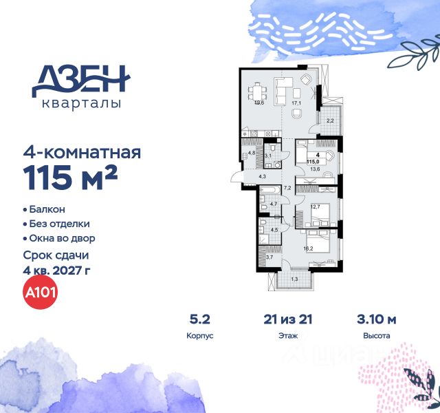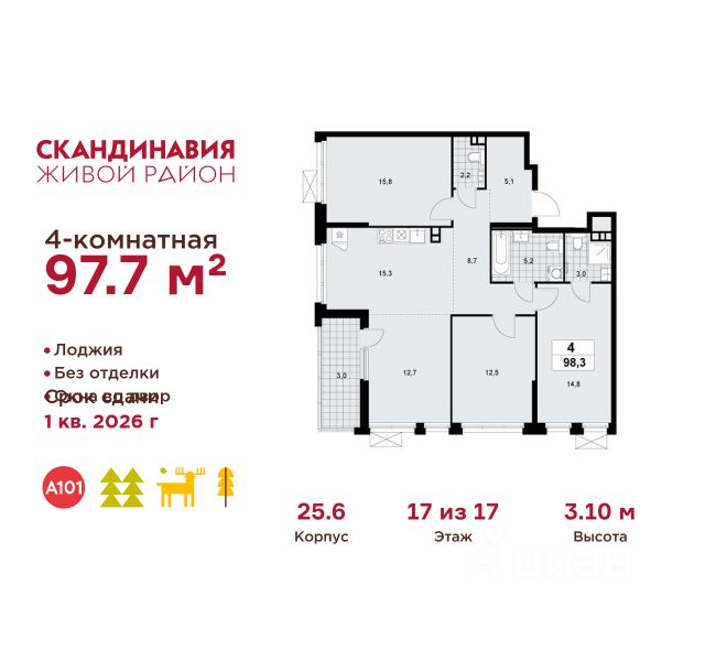 Продается четырехкомнатная квартира 558 в новостройке Жилой квартал "Прокшино" по адресу Москва, ТиНАО, Новомосковский АО, Сосенское С/П, Москва, Новомосковский административный округ, район Коммунарка, жилой комплекс Прокшино, 7.1.3. Общая площадь квартиры - 120.50 кв. м., этаж 10 из 10, секция 9. Тип проекта, по которому построен дом - монолит, компания-застройщик - ООО "А101". Стоимость квартиры - 45059770 Р. Срок сдачи - 4 квартал 2027. ПРЕДЛОЖЕНИЯ ОТ ЗАСТРОЙЩИКА В ФЕВРАЛЕ 2026: Скидки до 10% на все квартиры. Только в офисах продаж до 28 февраля. Ипотека от 13,9 % для всех! На весь срок. "Семейная ипотека" вернулась. Ставка от 3,5 % на весь срок! Без удорожания! Выгодное ипотечное комбо: Ипотека от 2200 р./мес. и от 6 % после рождения ребёнка! Ипотека для всех "Держи пять!" - ставка 5 % на 2 года! *более подробную информацию по скидкам и акциям уточняйте в отделе продаж ЖК "Прокшино" строится на юго-западе Москвы всего в 500 м от одноимённой станции метро, что обеспечивает быстрый и удобный доступ в любую точку столицы. Вдоль живописного пруда почти на километр протянулась благоустроенная набережная. Монолитные дома комфорт- и бизнес-класса - узнаваемой выразительной архитектуры, с архитектурно-художественной подсветкой фасадов. Пешеходный мост через пруд - украшение района и главный путь от метро. На берегу обустроены зоны отдыха с качелями, деревянными настилами, шезлонгами и тренажёрами. Зелёные дворы свободны от машин. В районе реализуется проект благоустройства "Природа - в каждый двор!". Рядом с "Прокшино" появятся всесезонный горнолыжный курорт, аквапарк с дайвинг- и сёрфинг-центром. Развивается крупный бизнес-квартал. В пешей доступности от дома открываются детские сады, активно строится новое здание одной из лучших школ Москвы. Работают магазины, кафе, бытовые сервисы. Через район проходят веломаршруты и прогулочные дорожки. Преимущества "Прокшино": - 500 м до метро "Прокшино" - благоустройство "Природа - в каждый двор!" - набережная Хованского пруда - уникальная инфраструктура - "Школа Ямбурга" (топ-50 Москвы)