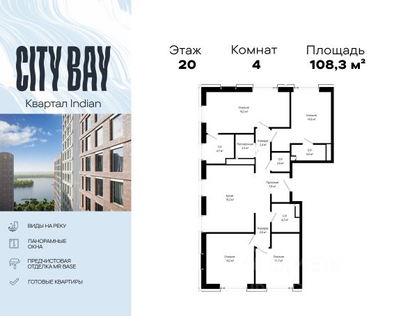 Прямая продажа от застройщика. Продаётся 4-комнатная квартира общей площадью 108.30 м² с предчистовой отделкой в ЖК City Вау на 20-м этаже 20 этажного дома. Корпус сдан. Концепция жилого комплекса City Вау - настоящий город в городе с отлично развитой инфраструктурой и собственной благоустроенной набережной. На территории жилого комплекса расположено пять кварталов - Atlantic, Pacific, Indian, North, Cliff. Жилой квартал City Вау отличается оригинальной концепцией и выделяется среди других проектов такими характеристиками как: - Архитектура, - Виды из окон, - Природное окружение, вызывая гордость у жителей и восхищение у прохожих. Вся жизнь района Покровское-Стрешнево строится вокруг водных объектов: - Пойма реки Сходни с уникальной экосистемой, - Речка Химка и Химкинское водохранилище, - Москва-река, - Канал имени Москвы. Кругом вода, и местные с удовольствием этим пользуются. А сразу за рекой - центр водного спорта в Строгино с вейк-парком и яхт-клубами. Помимо воды, здесь очень много зелени: - Рядом Сходненский ковш памятник природы, естественный амфитеатр глубиной 40 метров; - Парк при усадьбе Братцево с фруктовым садом; - Дубовая роща "Маяк", - Алешкинский лес; - Лесопарк Покровское-Стрешнево с пляжами и бобрами. Главные транспортные артерии района: - Волоколамское шоссе, - Таганско-Краснопресненская линия метро и МЦД-2. Всего за 20 минут можно добраться до центра на машине или метро, а МЦД связывает ЖК City Вау с северными, восточными и юго-восточными районами. Компания MR предлагает своим клиентам специальные условия приобретения квартир в рамках программ ипотечного кредитования от банков-партнеров.