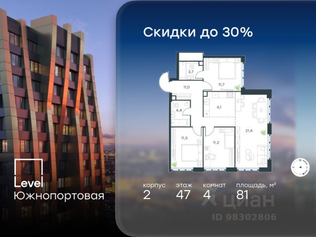 Высокий видовой 16 этаж, красивое панорамное остекление. Из окон открывается живописная завораживающая панорама на город, красивые кварталы (ЖК Бизнес-класса "Символ"), высотки и церкви Москвы.