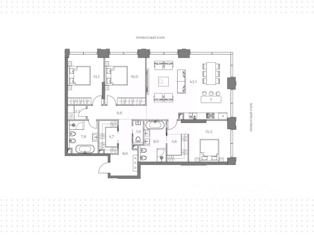 Цена указана с учётом скидки при 100%-й оплате, несубсидированной ипотеке, рассрочке (кроме программы "Рассрочка 0%"). В Академическом районе продаётся 4-комнатная квартира площадью 122.40 кв.м без отделки. Квартира расположена на 17-м этаже 19-этажного жилого комплекса бизнес-класса Левел Академическая (компания Level Group). Площади помещений определены кадастровым инженером по результатам обмеров. Отличная транспортная доступность: - 1 мин. пешком до станции метро "Академическая"; - 4 мин. на автомобиле до ТТК; - 8 мин. на автомобиле до Садового кольца; - 13 мин. на автомобиле до Кремля. Продуманный архитектурный проект: - современная архитектура от бюро UNK project; - высокие потолки в квартирах до 6,62 м; - окна в пол высотой 2,5-2,68 м с панорамным видом на МГУ, Москва-Сити и другие доминанты Москвы; - квартиры с моллированным остеклением - радиусные окна открывают увеличенный угол обзора; - более 20 вариантов планировочных решений; - уникальные квартиры с собственным патио и возможностью обустройства дровяного камина; - квартиры сдаются без отделки, что открывает свободу для создания интерьера по своему вкусу. Расположение: Камерный проект из 1 корпуса расположен тихом зеленом районе Москвы, в непосредственной близости к центру города. В округе построено 80 детских садов, 50 школ и 30 вузов, 7 из которых входят в топ100 вузов России: МГУ, МГИМО, РАНХиГС, МИСИС, РУДН, РЭУ им. Плеханова и РГУ нефти и газа им. Губкина. Этот район буквально утопает в зелени парков, начиная с уютного Академического в 6 минутах пешком и заканчивая одним из крупнейших в городе парком 50-летия Октября (12 минут на автомобиле). Общая площадь природных объектов в радиусе 2-6 км от дома - 476,5 га. Внутренняя инфраструктура: На территории жилого комплекса Левел Академическая откроется собственный торговый центр, а для отдыха жителей будут созданы общественные пространства: комфортное лобби с дизайнерской отделкой, окнами в пол и потолками высотой 4,5 м, а также две благоустроенные зоны - территория по периметру здания и пространство на стилобате. Во дворе на стилобате предусмотрены детская и спортивная площадки, коворкинг и лаунж-зона на открытом воздухе. Стилобат украсят скульптуры животных - жирафа, зайца и волка, которые станут ярким акцентом внутреннего двора жилого комплекса Левел Академическая, подчеркивая близость к музею Дарвина. Процент озеленения территории - 58%. Технологии и безопасность: Жителей жилого комплекса Левел Академическая не коснется ежегодное отключение горячей воды благодаря собственным центральным водонагревателям. Безопасность гарантирует круглосуточная охрана, безлимитный вайфай, круглосуточное видеонаблюдение. Удобное перемещение внутри комплекса будут обеспечивать 5 лифтов с доступом в паркинг с жилых этажей. п