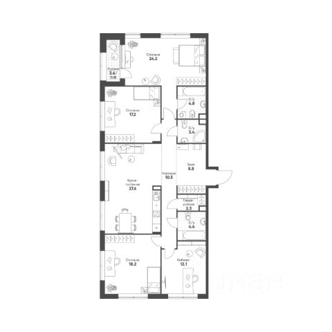4-к квартира квартира в премиальном комплексе HIGH LIFE на 19-м этаже в 32 этажном здании. Общая площадь 129.3 кв. м. HIGH LIFE - премиальный проект компании PIONEER, расположенный в 5 минутах от Садового кольца, вблизи исторического Замоскворечья. Авторская архитектура от бюро ADM. Панорамные окна и изящные эркеры открывают виды на Кремль, МГУ, Москва-Сити, Дом Музыки и набережные реки. 70% видовых квартир. Инфраструктура и сервис отеля 5*: • Дизайнерские лобби • Частный кинозал • Библиотека с камином • Двухуровневый двор-парк 2 га с хвойным лесом и террасами • Залы для йоги и занятий спортом • Массажный кабинет, СПА и бьюти-зоны • Консьерж-сервис Технологии и инженерия: • Центральная система кондиционирования • Дополнительная вентиляция помещений • Буферная мусорокамера • Обеззараживание воздуха • Мониторинг качества воды с дополнительной доочисткой • Дополнительная шумоизоляция • Автоматизированная система передачи данных в УК Системы безопасности: • Датчики движения • Круглосуточное наблюдение • Система доступа с распознаванием лиц • Приложение для наблюдения за квартирой • Система пожарного обнаружения • Датчики дыма и протечек За 24 года на рынке недвижимости компания PIONEER реализовала более 30 проектов. Сегодня PIONEER - девелопер премиальной недвижимости с 4 проектами класса премиум и делюкс. Звоните, и мы с удовольствием расскажем все подробности о нашем замечательном проекте и условиях покупки. Продажа от застройщика. 4-комнатная квартира в готовой новостройке в районе Даниловский в Москве.