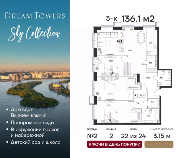 Прямая продажа от застройщика. В жилом квартале, расположенном в Нагорном районе Москвы, продаётся 4-спальная квартира площадью 126.30 кв.м без отделки. Квартира расположена на 26 этаже 26-этажного дома, корпус 1, в жилом квартале бизнес-класса TopHILLS (застройщик ГК Инград). Расположение: Нагорный район - один из наиболее благополучных на юге Москвы. С одной стороны, локация окружена лесопарковой зоной "Долина реки Котловки" и Коробковским садом, с другой - имеет удобную транспортную связь с центром города и доступ к развитой инфраструктуре. Нагорный район Южного округа Москвы не относится к центру города, поэтому здесь менее загруженный автомобильный трафик, позволяющий за 10 минут доехать до ТТК. Для тех, кто предпочитает общественный транспорт - в шаговой доступности станции метро "Нагорная" и "Нагатинская". Отличная транспортная доступность: Даже в часы пик жители квартала возвращаются домой вовремя и не важно, по какому направлению. ТТК в десяти минутах, до метро - рукой подать. Метро Нагорная - 100 метров Метро Нагатинская - 1 км Особенности комплекса и благоустройство: В жилом квартале TopHILLS собственная инфраструктура органично разместилась в стилобате между жилыми корпусами: торговый комплекс, детский развивающий центр, кафе, ресторан домашняя пекарня, супермаркет. Воспользоваться инфраструктурой можно, не снимая тапочек, без выхода на улицу. Стоимость квартиры - 66 730 000 Р. Дом сдан. Более подробную информацию по объекту уточняйте по телефону и в отделе продаж.