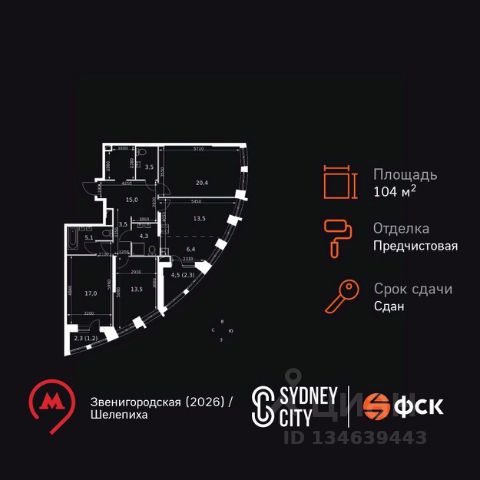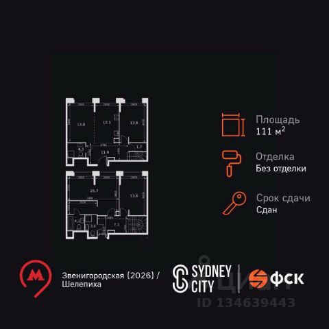 Цена указана с учётом скидки при 100%-й оплате, несубсидированной ипотеке, рассрочке (кроме программы "Рассрочка 0%"). Ключи в момент покупки! Квартира с террасой! В готовом жилом комплексе на набережной Москвы-реки продается 4-комнатная квартира площадью 104,6 кв.м без отделки. Квартира расположена на 21 этаже 32 этажного корпуса " Юг" в жилом комплексе бизнес-класса Левел Причальный (компания Level Group/Левел групп). Возможность купить машино-место в подземном паркинге. Отличная транспортная доступность - 7 мин. пешком до станции метро и МЦК "Шелепиха"; - 5 мин. на авто до ТТК; - 10 мин. на авто до Москва-Сити; - 13 мин. на авто до Садового кольца. Продуманный архитектурный проект - концепция от архитектурного бюро "Остоженка"; - окна высотой до 3,03 м и шириной до 4,3 м; - виды на МГУ, Москва-Сити, высотки на Смоленской и Кудринской площадях; - квартиры сдаются без отделки - отличный вариант для создания уникального интерьера. Технологии и безопасность - система приточной вентиляции обеспечит свежий воздух в квартирах; - собственные центральные водонагреватели - гарантия горячей воды в каждой квартире круглый год; - единый ключ доступа по всей территории ЖК; - высокоскоростные лифты OTIS. Благоустройство Дизайн внутренней территории жилого комплекса Левел Причальный разработан совместно со студией UpLand. Это уникальный двухуровневый двор с пространством для жителей любого возраста. Концепция игрового пространства верхнего яруса - каникулы на морском побережье. Дети постарше будут в восторге от большого скалодрома и песочницы-пляжа площадью 280 м², а для малышей - безопасная площадка с фигурой кита-полосатика по центру. Верхний и нижний уровни двора соединяет 90-метровый мост-пергола. Дети смогут спускаться с него по горкам, будто ныряя в пучину океана. На нижнем уровне всё располагает к размеренному отдыху: прогулкам, беседам, релаксу на шезлонгах, творческим вечерам в амфитеатре или командным активностям с соседями. Все общественные зоны жилого комплекса, включая двор и лобби, имеют доступ к сети Wi-Fi. Внутренняя инфраструктура В жилом комплексе предусмотрен собственный торговый центр, супермаркет, фитнес-зал и другие сервисы. Просторные входные группы с потолками до 4,4 м подчёркивают статусность дома. Для удобства предусмотрены мойки для лап животных, кладовые, гостевые санузлы и теплый подземный паркинг на 694 машино-места. Инфраструктура района Жилой комплекс Левел Причальный расположен в районе Хорошёво-Мнёвники, одном из самых экологически чистых и престижных районов СЗАО Москвы. В 15-минутной доступности на авто - 50 детских садов, 22 школы, 5 торговых центров, десятки супермаркетов и фитнес-клубов. И совсем скоро Шелепихинская набережная, на которой расположен жилой комплекс, приобретет новый облик и станет одним из главных мест притяжения резидентов Левел Причальный. 4-комнатная квартира в готовой новостройке в районе Хорошево-Мневники в Москве.