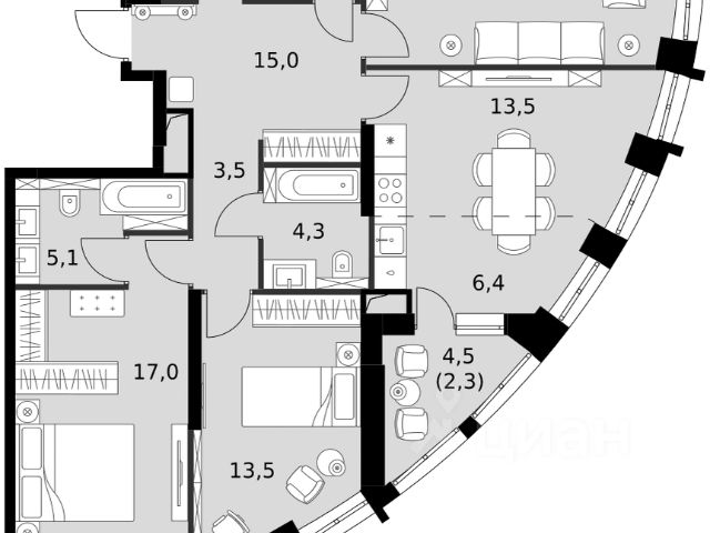 Продаётся 4 - комнатный пентхаус в готовом доме (Корпус 8), общей площадью 363.3 кв.м., на 21 этаже. О жилом комлексе Жилой квартал Lucky - это переосмысление и регенерация общественно-делового кластера площадью более 4.5 гектаров в центре Москвы. О застройщике Девелопер проекта Vesper специализируется в премиальном сегменте клубной жилой недвижимости. Портфель компании включает 22 проекта в Москве и странах Европы. Актуальные архитектурные проекты, индивидуальный дизайн, передовые технологии, качественные материалы и лучшие мировые практики воплощены в каждом доме компании. Расположение и транспортная доступность Квартал расположен на пересечении улиц 2-ая Звенигородская и Костикова, в 200 метрах от метро "Улица 1905 года". В непосредственной близости от парков, Москвы- реки, Сити и Садового кольца формируется идеальная среда для семейного проживания в мегаполисе. Архитектура Визуально квартал разделен на две части: верхний город с новыми высотными жилыми домами и нижний город с общественным пространством для инфраструктуры, где располагается новый социокультурный кластер площадью около 10 000 кв. м. Верхний город состоит из восьми жилых домов: семь 21-этажных башен и одно здание высотой 15 этажей. В восьми новых домах расположены 618 квартир. На каждом этаже 3-4 квартиры, большая часть которых имеет ориентацию на 2-3 стороны света. Из панорамных окон открываются виды на набережную Москва-реки, Сити и близлежащие парки. Знаковая архитектура, продуманные планировочные решения, изысканная отделка, инновационные инженерные решения воплощены в квартале Lucky. Инфраструктура В квартале представлена инфраструктура для всей семьи: парки и скверы, билингвальный детский сад La Berezka, собственный 600 м. игровой парк для детей, фитнес с подогреваемым бассейном на крыше, рестораны, кафе и магазины органических продуктов. В шаговой доступности от квартала расположены лучшие рейтинговые школы.