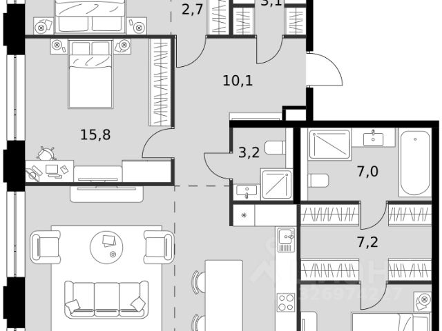 Прогнозный рост стоимости +50% в течение 2,5 лет.* Река. Парк. Сити. Готовый дом в идеальном месте. Продается четырехкомнатная квартира на 13 этаже с панорамным остеклением и видом на закрытый парковый двор. Береговой — квартал курорт в центре столицы. Пешеходная набережная начинается от дома: никаких дорог между вами и рекой. Уникальное сочетание природы парка Фили и ритма Сити. Инвестиционный потенциал — в развитии территории: продление набережной, открытие детского образовательного кластера, премиального фитнеса и гастрономических пространств. Ввод всех корпусов жилого квартала поддержит рост стоимости. Начните действовать выгодно уже сегодня. Ключи от нового образа жизни в Береговом: 12 террас на крышах — виды на Москву с высоты птичьего полета Лобби с камином, переговорной и консьерж-сервисом Большой премиум-фитнес (4700м2) с бассейном, термами и спа-комплексом Детство на берегу Москвы-реки — для маленьких резидентов будут построены школа и детский сад на 1000 и 300 мест Гастрономическая набережная: рестораны и премиум-сервисы откроются на первых этажах Причал "Береговой" рядом с домом — путешествуйте по городу, пока другие стоят в пробках Безопасность и уединение: контроль доступа, видеонаблюдение и круглосуточная диспетчерская Двухуровневый подземный паркинг и кладовые. Безупречная квартира для жизни: Пространство света и воздуха: панорамные окна и высокие потолки 3.2 м Технологии: центральное кондиционирование и роботизированная система очистки фасадов — вид из окна всегда будет идеальным Совершенство планировки: просторная кухня-гостиная и максимум полезной площади Квартира без отделки — возможность создать уникальный интерьер в вашем уникальном стиле. Или выбирайте свою версию идеального дома в коллекции планировок: С изолированными спальнями Мастер-спальнями с гардеробными и ванными Видовые ванные комнаты Функциональные постирочные Эксклюзивные лоты: Пентахусы с приватными террасами Двухуровневые пентхаусы Локация, о которой мечтают: 10 минут до Сити — и вы в эпицентре деловой жизни. Две станции метро в пешей доступности — когда каждая минута на счету. Утром — пробежка по парку Фили, вечером — прогулка на велосипеде вдоль реки, выходные — водный спорт в Крылатском. Речные трамвайчики вместо такси, зеленые парки и благоприятная экология — привилегии престижного ЗАО Москвы. В 2025 году открыт мост Академика Королева, что обеспечило дополнительный выезд на ТТК и Звенигородское шоссе. Условия покупки: выгодные программы покупки от застройщика, специальные условия при полной оплате. Оставляйте заявку на персональную презентацию в шоу-руме. *Не является индивидуальной инвестиционной рекомендацией.