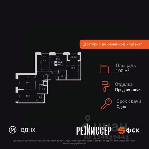 Готовые дома и ключи в день покупки Рассрочка 0% Продаётся 4-комнатная квартира площадью 190.9 м² на 23 этаже в Жилом Комплексе "Союз". Квартал здоровой жизни премиум-класса с рекордным количеством олимпийских видов спорта: - Ледовая арена для хоккея и фигурного катания, - Футбольные поля для тренировок, - Спортивный зал для фехтования, - Бассейн на 6 дорожек, - Центр единоборств, - 4 крытых площадки для настольного тенниса, - 7 теннисных кортов (крытых и открытых), - 4 крытых площадки для сквоша, - Легкоатлетический стадион, - Площадки для баскетбола и волейбола. Уникальные форматы квартир с мастер-спальнями, приватными террасами, балконами, а также пентхаусы с открыточными видами на город. Все квартиры продаются с отделкой Shell&Core и панорамным остеклением. Расположение Пешком: - 2 мин. до парка "Сад Будущего"; - 6 мин. до ст. м. "Ботанический сад"; - 6 мин. до ст. МЦК "Ботанический сад"; - 6 мин. до парка "Леоновская роща"; На автомобиле: - 2 мин. до СВХ (МСД); - 5 мин. до Проспекта Мира; - 10 мин. до ТТК; - 15 мин. до Садового кольца; - 25 мин. до аэропорта "Шереметьево". Благоустройство - собственная спортивная инфраструктура 7 Га; - зона для пикников; - игровые и спортивные площадки для детей всех возрастов; - розарий, а также сосновые, каштановые и дубовые аллеи; - площадки под открытым небом для занятий спортом и йоги; - игровые комнаты для детей; - лаунж-зона для резидентов; - просторная переговорная для деловых встреч; - премиальный ресторан "Шабада" Сосо Павлиашвили с водными арт-объектами на прогулочной аллее, садом ароматных трав и сценой под открытым небом; - кафе, химчистки, аптеки и супермаркеты рядом с домом. Окружение - 8 парков: Сад Будущего, Леоновская роща, Хуамин, Главный ботанический сад РАН, Шереметьевская дубрава, Останкино, парк спорта "Яуза", пойма реки Яуза и музей-усадьба "Останкино"; - 3 ВУЗа: ВГИК, РГСУ, МГПУ; - 12 школ, в том числе: школа 1499 им. И.А. Докукина (топ 100), Brookes Moscow, IThub школа; - 18 детских садов, в том числе билингвальный ALERTUM KIDS; - один из крупнейших океанариумов Европы "Москвариум"; - один из крупнейших в Европе торгово-развлекательных центров "Европолис".