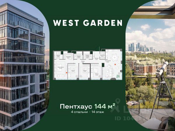 Пентхаус с дровяным камином и видом на МГУ В пентхаусе: • светлая кухня-гостиная 47,5 кв. м с дровяным камином, • четыре спальни, в том числе мастер-спальня с личной гардеробной и ванной комнатой, • панорамные окна, • потолки 4,3 м. West Garden расположен в зелёном Западном районе Москвы, который вдохновляет на прогулки и занятия спортом на свежем воздухе. Тысяча гектаров парков и зон отдыха в непосредственной близости от квартала открывает безграничные возможности для прогулок и отдыха. Клубные дома расположены в просторном парке 16 га, вдоль реки. Здесь есть всё для комфортного отдыха - прогулочные маршруты, беседки для пикника и пространства для тихого отдыха с беседками, качелями и навесами. 2 километра благоустроенной набережной реки Раменки - ещё одно пространство в вашем распоряжении. В отделке фасадов используются натуральные и долговечные материалы: гранит, известняк, клинкерный кирпич. На территории West Garden и в его окружении представлены разнообразные возможности для активного образа жизни и занятий спортом. Для детей создана насыщенная инфраструктура по стандарту Kid's Lab от Sminex. Fine Development - это комплексный, вовлечённый и ответственный подход Sminex. Результат этого - совершенные дома и сервисы: восхищающие, удобные и красивые, с высочайшим уровнем заботы на всех этапах жизни с нами.