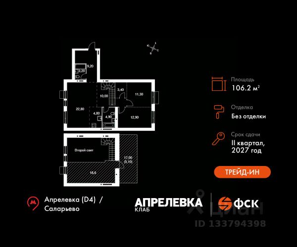 Прямая продажа от застройщика! Загородный жилой комплекс класса Комфорт Плюс. Продаётся 4-к квартира номер 112 общей площадью 81 кв.м на 3-м этаже 5 этажного дома. Без отделки. Особенности: - Квартира доступна к покупке в Trade-In. - Мастер-зона с гардеробной. Просторное место для отдыха и удобного хранения вещей. - Распашная планировка - отличное сочетание удобства и свободы. - Увеличенное число окон - Душ помимо ванной - дополнительное удобство для вашей семьи. - Евроформат - просторное и удобное жилье с отличной планировкой. - Гибкая планировка - создайте пространство по своему вкусу. - Просторная мягкая зона - комфорт и уют для отдыха всей семьи. - Проходная кухня-гостиная - идеальное пространство для общения и готовки. - Гардеробная - удобство для хранения и организации вещей. - Ниша под шкаф - компактное и удобное место для вещей. Квартира без отделки. Чистый холст для воплощения интерьера вашей мечты. Расположение комплекса: "Апрелевка Клаб" - это жилой комплекс всего в 30 км от Москвы по Киевскому шоссе, где городские удобства гармонично сочетаются с природой. Здесь начинается новая ступень жизни: современная малоэтажная застройка не нарушает живописные виды, а закрытая территория дарит чувство безопасности. Особенности проекта: - Улучшенная отделка МОПов - Социальная инфраструктура в шаговой доступности: муниципальные детский сад и школа, поликлиника - Не просто школа: школа МГИМО - Школа искусств МАРХИ - Всесезонное уникальное благоустройство: от города к природе через призму искусства - Комфортное пространство (спорт, досуг с детьми, работа в удаленном формате с прекрасными видами, место для творчества, тихие места для уединения и размышления) - Отличная транспортная доступность Транспортная доступность: - Метро Филатов Луг и Рассказовка - 25 км - МЦД Апрелевка - 5 км - МКАД — 30 км - Садовое кольцо — 45 км - Метро в Троицке (открытие в 2030) — 22 км - Ближайшая остановка общ. транспорта "Фрунзевец" - 550 м - Ст. м. "Саларьево" - 30 мин. на автобусе Внутренняя инфраструктура: Здесь есть хобби на любой вкус, возраст и сезон. Велосипедные, беговые и прогулочные маршруты, уличный workout, летний амфитеатр, спортивная площадка, центральная площадь с сухим фонтаном и игровыми зонами. Крытые развлечения: зона коворкинга, детская комната, кафе. В жилом комплексе будет современная школа на 830 мест и детский сад на 400 мест нового формата: с просторными классами и современным оснащением согласно высоким стандартам. Также на территории будет размещена школа искусств. Дворы без машин, игровые зоны и маршруты для прогулок с навигацией минимизируют риски и создают ощущение защищенности. Вдоль южной границы комплекса протекает река Десна, создавая зону отдыха в природном окружении. Цены указаны с учетом скидки. Продается 4-комнатная квартира в новостройке в городском округе Наро-Фоминском Московской области.
