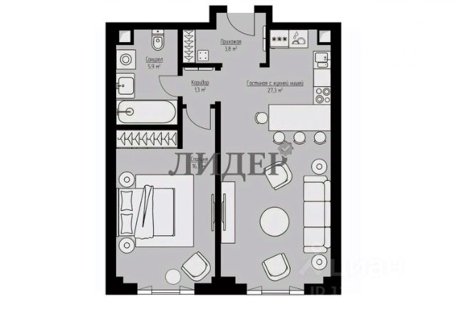 Планировочное решение: кухня-гостиная со столовой зоной общей площадью 58 м2, 3 ( ТРИ ) изолированные спальни, одна из которых -мастер-спальня со своим санузлом и гардеробной, второй гостевой санузел.