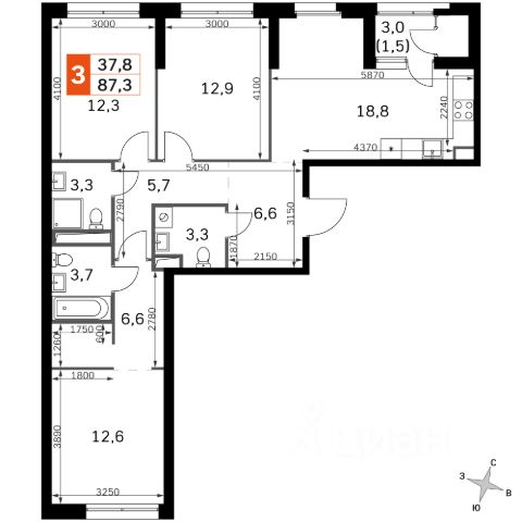 Видовая квартира с тремя спальнями в комплексе премиум-класса Primavera у набережной Москва-реки. Квартира без отделки площадью 105 м² расположена на восемнадцатом этаже в квартале Vivaldi, строение 3. Возможно спланировать кухню-гостиную, мастер-спальню с собственной ванной комнатой, две спальни, санузел, два балкона и холл. Благодаря панорамному остеклению пространство наполнено естественным светом и теплом, открываются виды на Москву-реку, набережную и Чкаловский бульвар. Главное о доме. Primavera — квартал у набережной с четырьмя блоками и корпусами разной высоты от двух до двадцати двух этажей. Панорамные окна усиливают свет и открывают виды на воду и зелень, на первых уровнях встречаются патио, в пентхаусах — террасы и высокие потолки. В лобби — светлая палитра, мягкие диваны, места для колясок и велосипедов, стойка ресепшн. Для встреч и работы открыли club house с лаунж-зонами и переговорными. Во дворах высадили зелень и добавили тихие места для отдыха. Многоуровневый паркинг даёт прямой доступ к корпусам на лифте. Главное о локации. Название переводится как "весна", и район вокруг тоже дышит этим настроением. Жизнь у воды здесь наполняется ощущением природы и простора. Утро жители проводят в прогулках по Москворецкому парку или по благоустроенной набережной у дома. Дети ходят в новые школы и детские сады в шаговой доступности, подростки выбирают спортивные секции — от тенниса до командных игр. Днём можно отправиться в один из трёх яхт-клубов: покататься на сапборде или выйти на катере к Строгинским затонам. Вечером соседи встречаются на площадках для спорта или выбирают отдых в зелёных зонах Покровского-Стрешнева. До МКАД всего 10 минут на машине, а до ТТК — 18 минут. Комментарий эксперта. Меня зовут Владислав Лазарев — брокер компании Whitewill. Я отвечаю за продажу этого лота. Свяжитесь со мной, чтобы получить расширенную презентацию, больше фотографий или договориться о просмотре. Могу провести экскурсию по локации и познакомить вас с этим домом. ID 300 240.