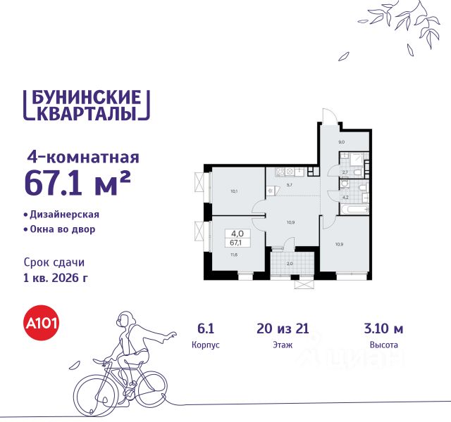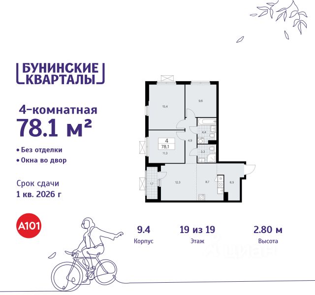Продается четырехкомнатная квартира 1009 в новостройке ЖК "Бунинские кварталы" по адресу Москва, ТиНАО, Новомосковский АО, Сосенское С/П, жилой комплекс Бунинские Кварталы, 9.4, район Коммунарка, Новомосковский административный округ, Москва. Общая площадь квартиры - 78.10 кв. м., этаж 19 из 19, секция 10. Тип проекта, по которому построен дом - монолит, компания-застройщик - ООО "А101". Стоимость квартиры - 23001231 Р. Срок сдачи - 1 квартал 2026. ПРЕДЛОЖЕНИЯ ОТ ЗАСТРОЙЩИКА В ФЕВРАЛЕ 2026: Скидки до 10% на все квартиры. Только в офисах продаж до 28 февраля. Ипотека от 13,9 % для всех! На весь срок. "Семейная ипотека" вернулась. Ставка от 3,5 % на весь срок! Без удорожания! Выгодное ипотечное комбо: Ипотека от 2200 р./мес. и от 6 % после рождения ребёнка! Ипотека для всех "Держи пять!" - ставка 5 % на 2 года! *более подробную информацию по скидкам и акциям уточняйте в отделе продаж ЖК "Бунинские кварталы" строится на юго-западе Москвы. Монолитные дома в лаконичной стилистике гармонируют с живописной природой. Из любой точки района удобно добираться до природных объектов, ключевых транспортных узлов, крупных торговых, спортивных, деловых и медицинских центров. Концепция уникального благоустройства района - "Выходи гулять!". Здесь появятся эстрада для районных творческих мероприятий, спортивные и игровые площадки, скейт-парк, дружелюбные пространства для домашних питомцев, благоустроенная набережная Ивановского пруда. В районе формируется собственная развитая инфраструктура: современные школа на 1100 мест и 2 детских сада на 540 малышей, магазины у дома и сетевые супермаркеты, фитнес, кафе, салоны, детские развивающие центры. Крытый каток "Самолёт Арена" - в 10 минутах пешком. За 15 минут можно дойти до действующей станции метро "Потапово". Предусмотрены удобные автомобильные выезды на проспект Куприна и улицу Александры Монаховой. Особенности "Бунинских кварталов": - ст. метро "Потапово" - 15 минут пешком - своя школа и детские сады - безопасные дворы без машин с системой контроля доступа - насыщенная инфраструктура - в шаговой доступности и на первых этажах домов 4-комнатная квартира в новостройке рядом с метро Бунинская аллея.