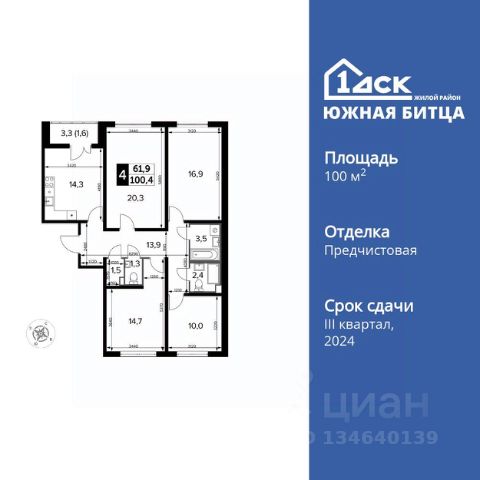 Прямая продажа от застройщика! Семейный жилой район класса Комфорт Плюс Продаётся 4-к квартира номер 349 общей площадью 100.7 кв.м. на 20-м этаже 24 этажного здания. Отделка Whitebox. Цена с учётом скидки. Особенности квартиры: - Гостевой санузел - комфорт и удобство для ваших гостей. - Душ помимо ванной - дополнительное удобство для вашей семьи. - Раздельный санузел - больше удобства для всех членов семьи. - Просторная кухня - место для семейных ужинов и кулинарных экспериментов. - Гардеробная - удобство для хранения и организации вещей. - Ниша под шкаф - компактное и удобное место для вещей. - Лоджия - уютное место для отдыха и тишины. - Панорамное остекление лоджии - открывает вид на окружающий мир. Квартира с предчистовой отделкой (White box). Вам не придется заниматься черновыми и трудоёмкими работы, а чистовую отделку и дизайн - сделайте на свой вкус. Информация о комплексе: Сочетание свободного перемещения по внутреннней территории без машин и ощущения абсолютной безопасности благодаря надежным ограждениям - вот что отличает ЖК Южная Битца. На территории комплекса созданы все условия как для активного образа жизни, так и для спокойного времяпрепровождения. Свободно перемещайтесь по внутренней территории в безбарьерной среде! Продуманное зонирование во дворах позволяет отделить тихие зоны для родителей со спящими младенцами и тех, кто хочет почитать на свежем воздухе, от шумных игровых зон. Игровые зоны учитывают возраст детей. Площадки для детей старшего возраста вынесены за пределы дворов. Ощущение уютного дома должно начинаться с подъезда. Мы постарались предусмотреть все нюансы, чтобы наши лифты отвечали самым строгим современным требованиям. А наличие кладовых позволит вам поддерживать идеальный порядок и уют в вашей квартире! Транспортная доступность: В 3 км от МКАД в нескольких минутах езды до трех станций метро: Аннино, Бульвар Дмитрия Донского, улица Старокочаловская и станции МЦД2 - жд Бутово. Внутренняя инфраструктура: Для жителей жилого района "Южная Битца" доступна развитая инфраструктура близлежащих московских районов Чертаново, Южное, Бирюлёво Западное, Северное Бутово и Южное Бутово. Множество образовательных учреждений, объекты здравоохранения, торговые и развлекательные центры, кинотеатры, кафе, рестораны, парки.