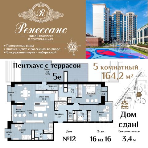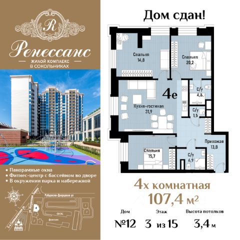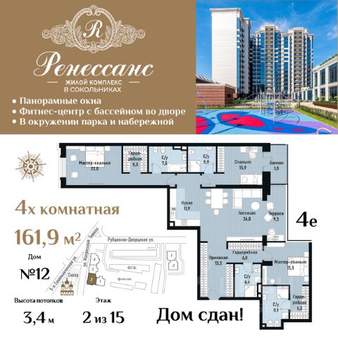 Цена указана с учётом скидки при 100%-й оплате, несубсидированной ипотеке, рассрочке (кроме программы "Рассрочка 0%"). В Басманном районе (ЦАО) продается 4-комнатная квартира площадью 94.60 кв.м без отделки. Квартира расположена на 17 этаже 17-этажного корпуса " B" в жилом комплексе бизнес-класса Левел Бауманская (компания Level Group). Отличная транспортная доступность: - 15 мин. пешком до метро "Бауманская" и "Электрозаводская"; - 4 мин. на авто до ТТК; - 8 мин. на авто до Садового кольца; - 15 мин. на авто до Кремля. Продуманный архитектурный проект: - Архитектура от бюро ARCH(E)TYPE, вдохновленная историей района; - 95% квартир с панорамными видами на набережные, парки и сталинские высотки; - Высокие потолки от 3,02 м до 6,3 м; - Лобби с комфортными лаунж-зонами; - Благоустроенный закрытый двор без машин. Расположение и инфраструктура: Левел Бауманская расположен в престижном Басманном районе (ЦАО). В пешей доступности находится легендарный МГТУ им. Баумана, Британский и Ломоносовский лицеи, а за 10 минут на автомобиле можно доехать до НИУ ВШЭ и других престижных вузов. На территории проекта предусмотрена развитая внутренняя инфраструктура: собственный детский сад и 10 коммерческих помещений на первых этажах домов. Благоустройство: Концепция благоустройства создана в соавторстве с именитым бюро GAFA. На площади 0,35 га расположатся зоны для отдыха, занятий спортом и прогулок. Во дворе для жителей жилого комплекса будет создан коворкинг прямо на свежем воздухе - открытые беседки и Wi-Fi на территории. Атмосферу приватности подчеркнёт обилие растительности - деревья и кустарники займут 50% двора. За счёт большого количества хвойных насаждений территория жилого комплекса будет зелёной круглый год. Инженерия и комфорт: Жители Левел Бауманская не зависят от сезонного отключения горячей воды. Для этого в проекте предусмотрены центральные водонагреватели, обеспечивающие комфорт круглый год. Для безопасности созданы следующие системы контроля доступа: круглосуточное видеонаблюдение всех общественных зон (лобби, двор, лифты, паркинг), вызывные панели у входов на закрытую территорию, видеодомофоны с возможностью управления через мобильное приложение, распознавание автомобильных номеров при въезде/выезде в/из паркинга. По заявке собственнику предоставляется возможность просмотра изображения отдельных видеокамер. Лифты: В жилом комплексе устанавливается лифтовое оборудование Sicher Elevator - одного из ведущих производителей с 20-летним опытом и 40 представительствами по всему миру. Кабины от Sicher Elevator отличаются тихим и плавным ходом, особой износостойкостью и современными технологическими и дизайнерскими решениями. Все лифты имеют прямой доступ в паркинг с жилых этажей. В домах также предусмотрен сервисный лифт. Грузоподъёмность лифтов от 450 до 1000 кг, скорость 1,6 м/с.